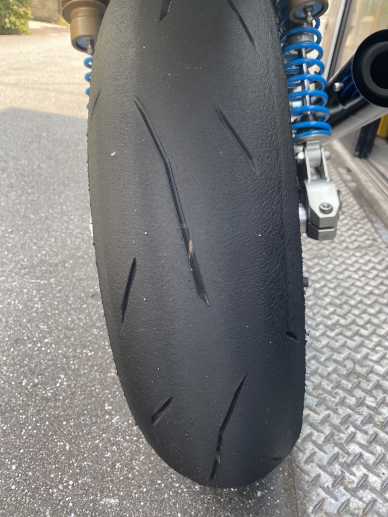 タイヤは前後とも数年前の使い古し。少しグリップは落ちますが練習用にはいいでしょう。
