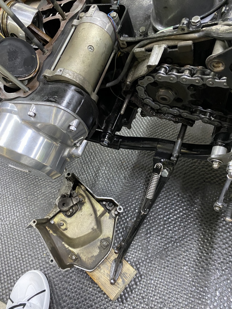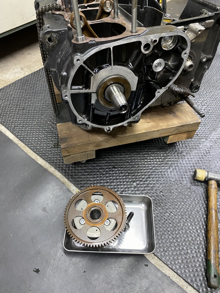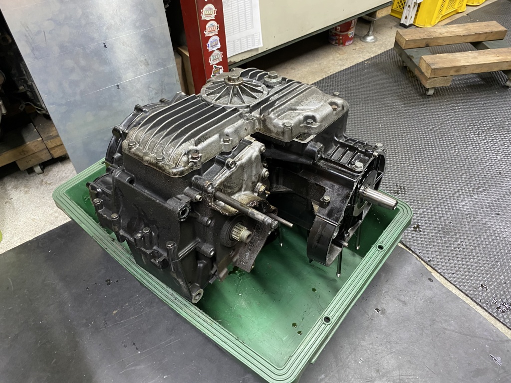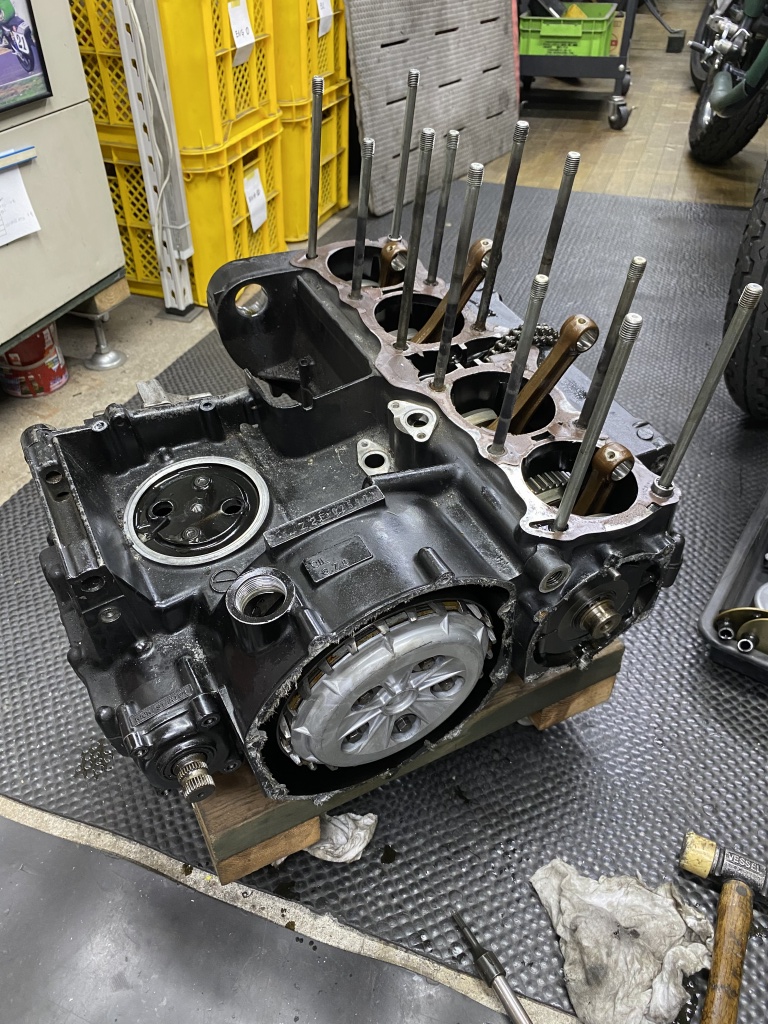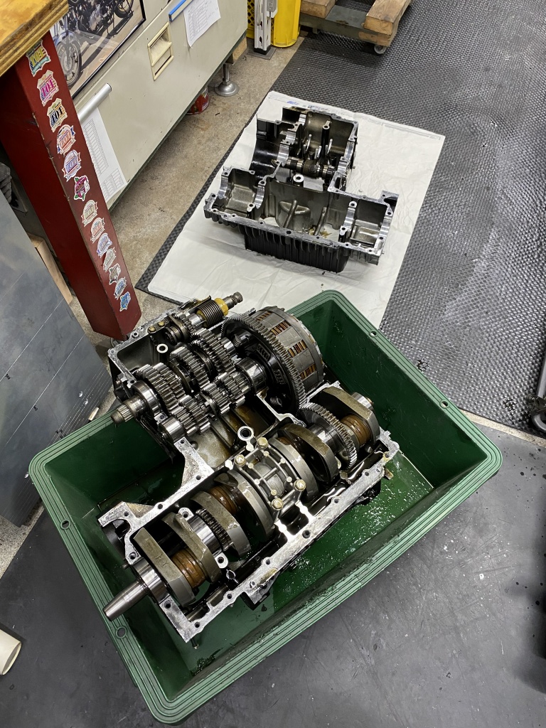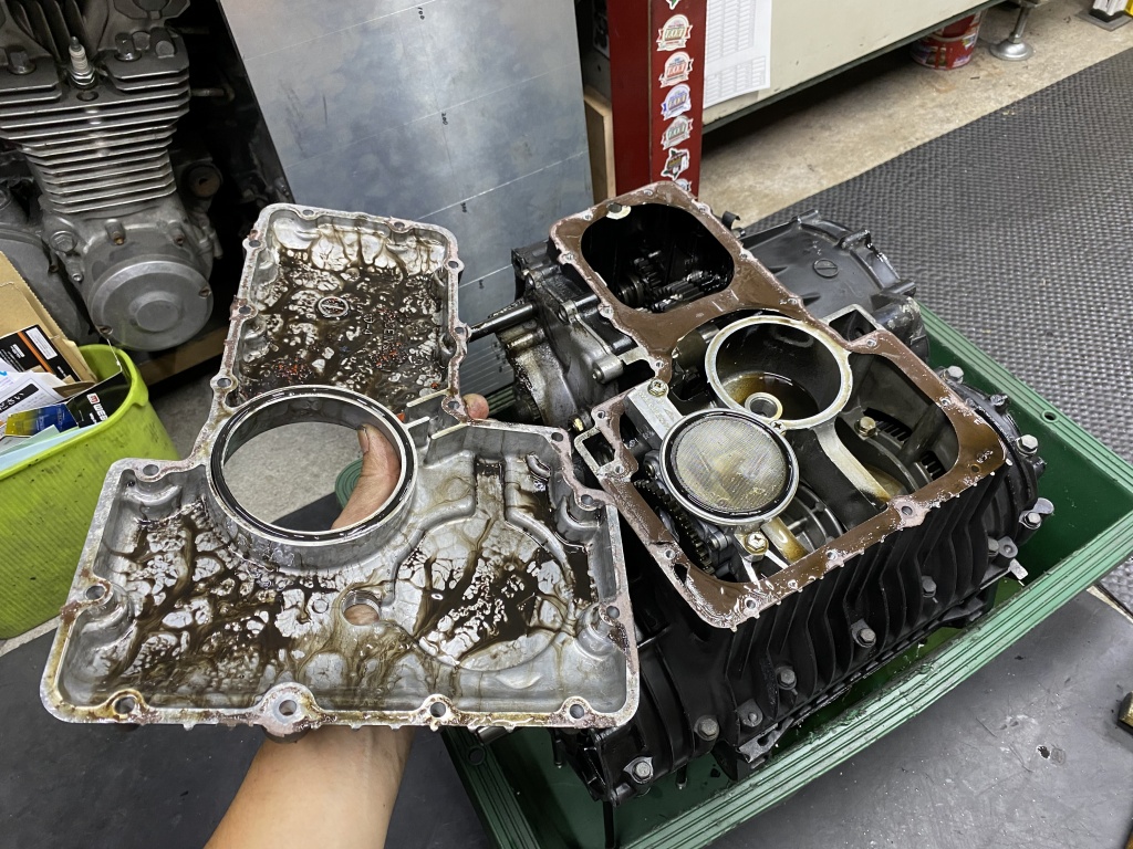 クランクケースを分離します。ミッションのドグなども摩耗は少なくきれいです。