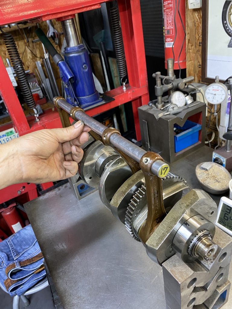 クランクは点検棒がスルリと通る、芯ずれ無しのいい状態です。