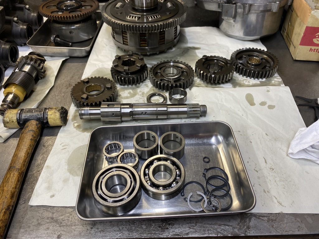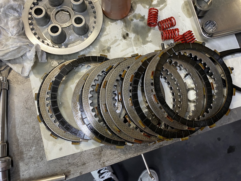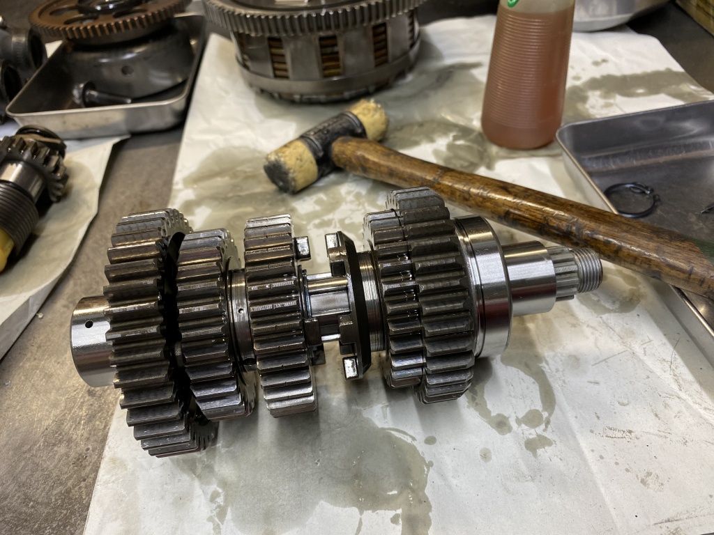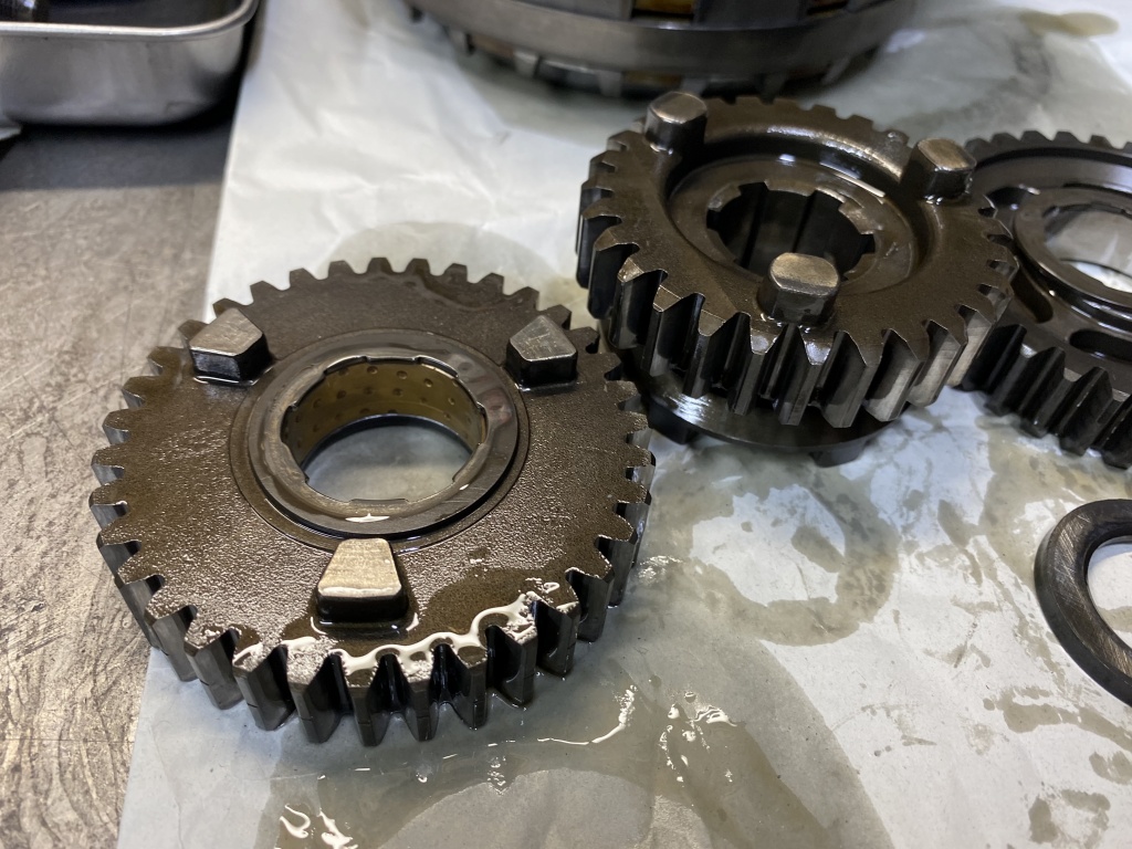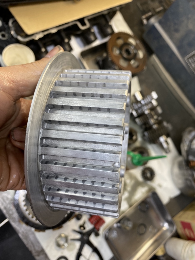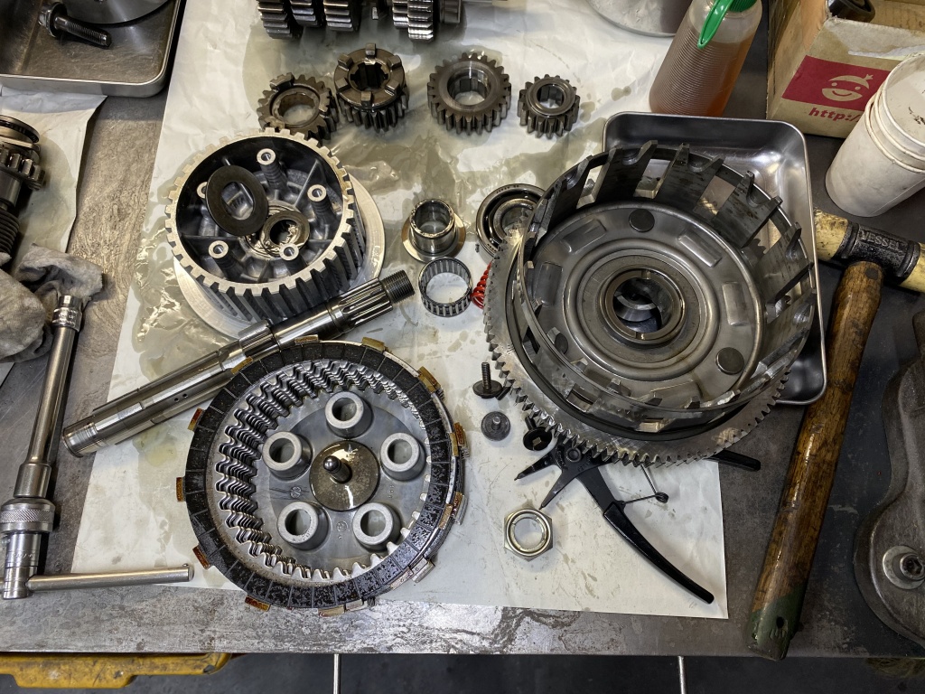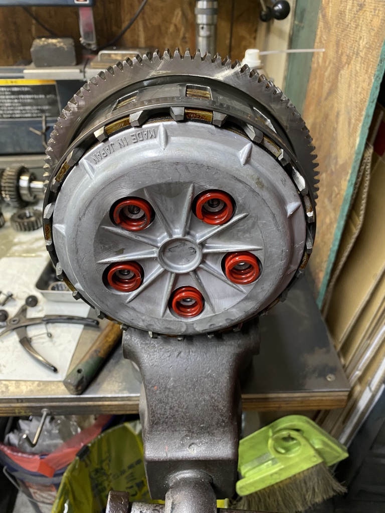 続いてインプット側。赤いクラッチスプリングは750純正です。
