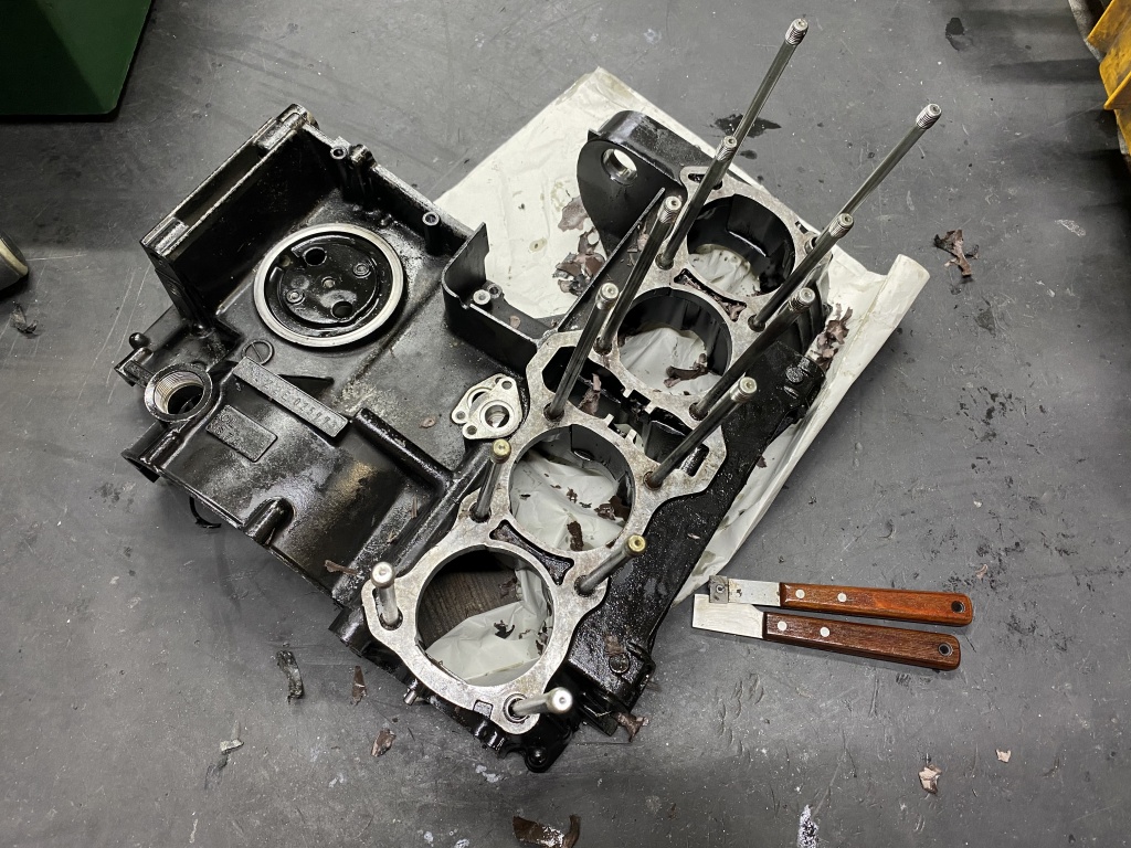 組み立て準備に入ります。古いガスケットをきれいに剥がすのが一番時間のかかる作業です。