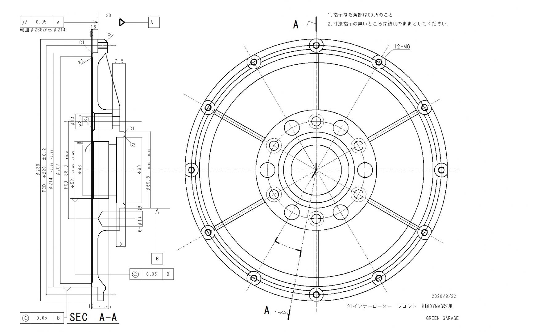 弊社のS1ローターを取り付けるため、既存のダイマグホイールを加工します。その設計が済んだのでご紹介します。