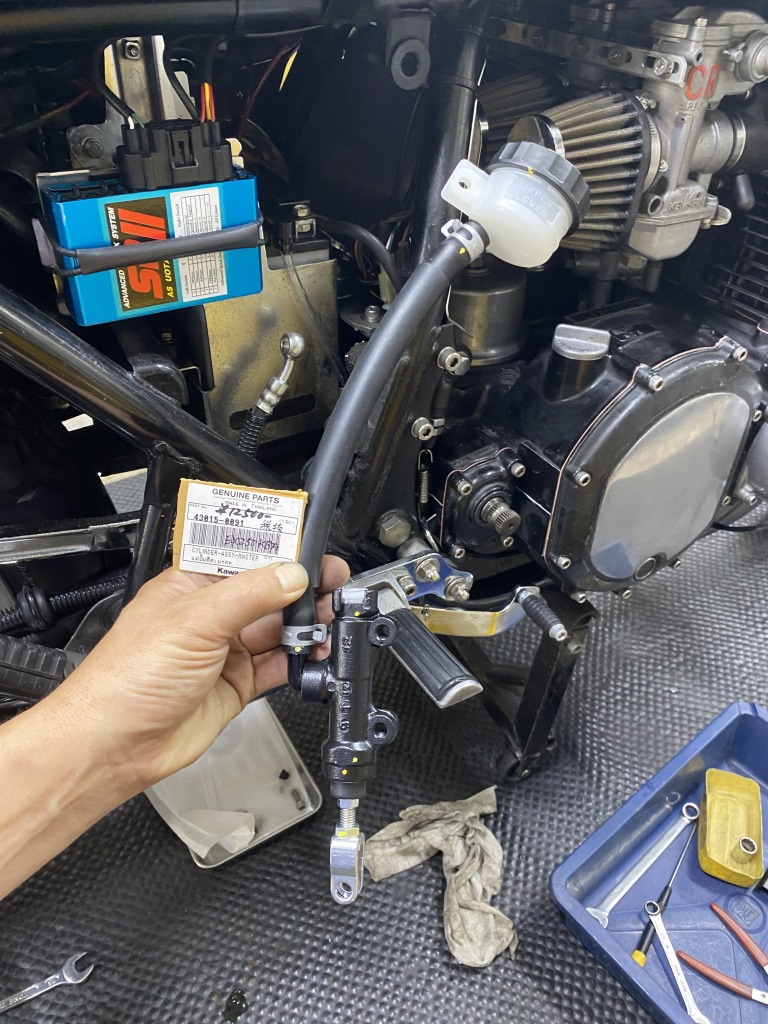 使用するのはカワサキ純正で大型リザーバータンクで汎用性のあるこちらのマスターです。部品番号 43015-0091