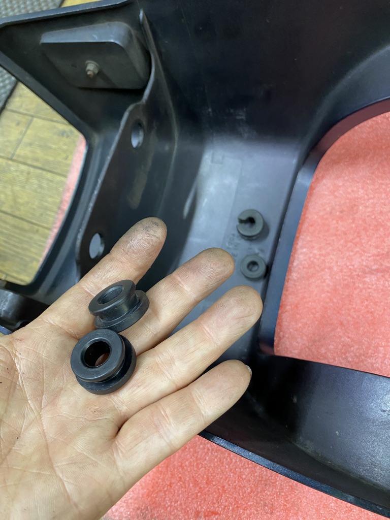 テールカウルのダンパーはサイズ違いが付いていたので純正と交換します。