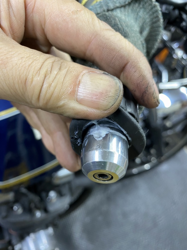 はみ出したグリップの内径にシリコングリスを塗布します。