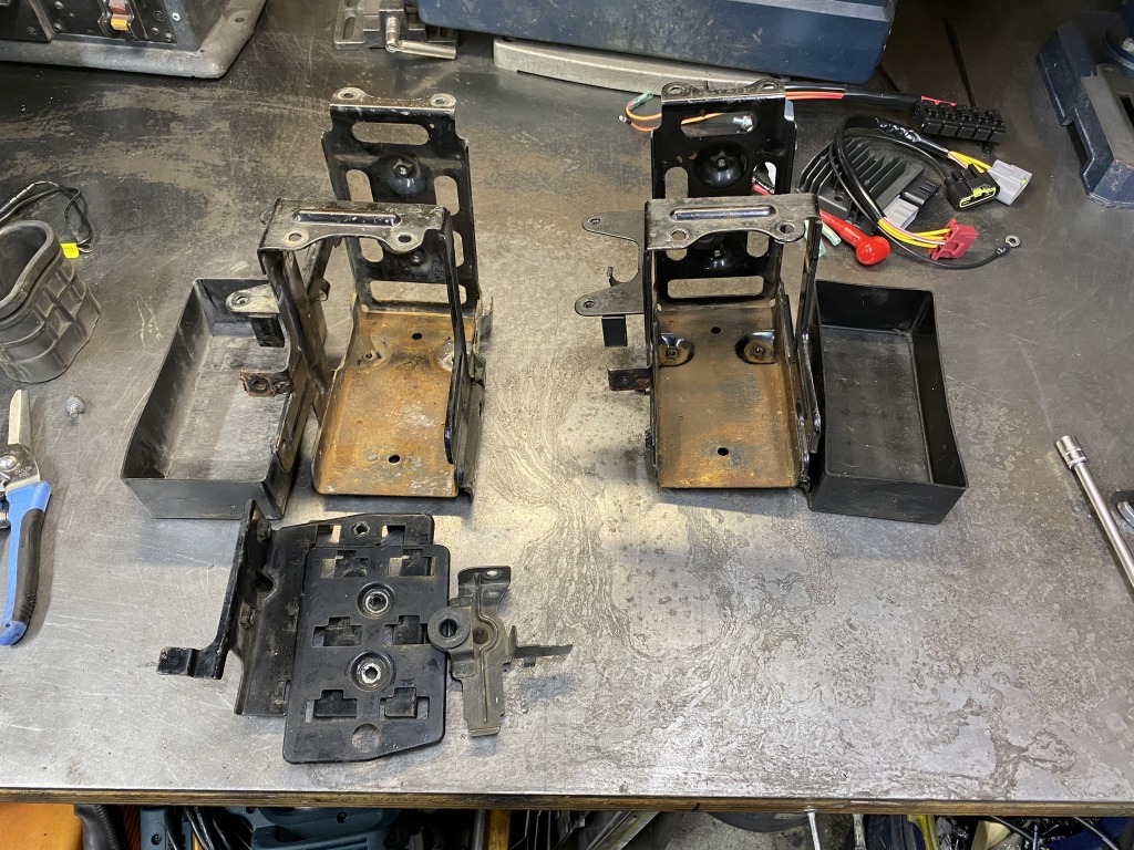 左の元のバッテリーケースはサビが酷かったので、ストックの中から程度のいいものを選び交換します。