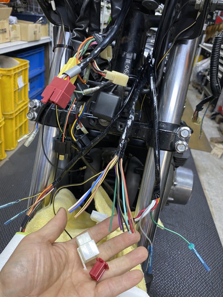 メーターとメインハーネスの接合部分は、メインハーネス側を改造してメーター側に合わせます。