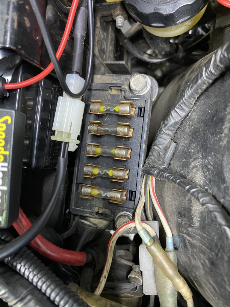 ヒューズBOXは純正です。上から2番目のメインヒューズも切れていないようです。