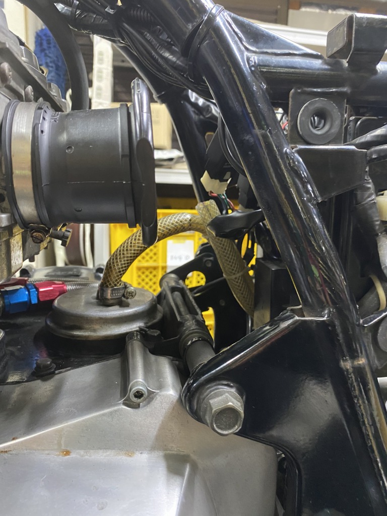 S1スイングアームのキャッチタンクへの接続はこんな感じ。
