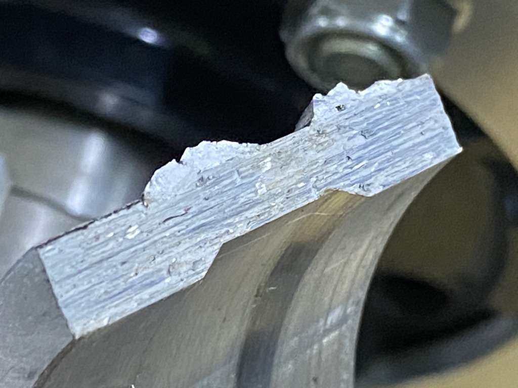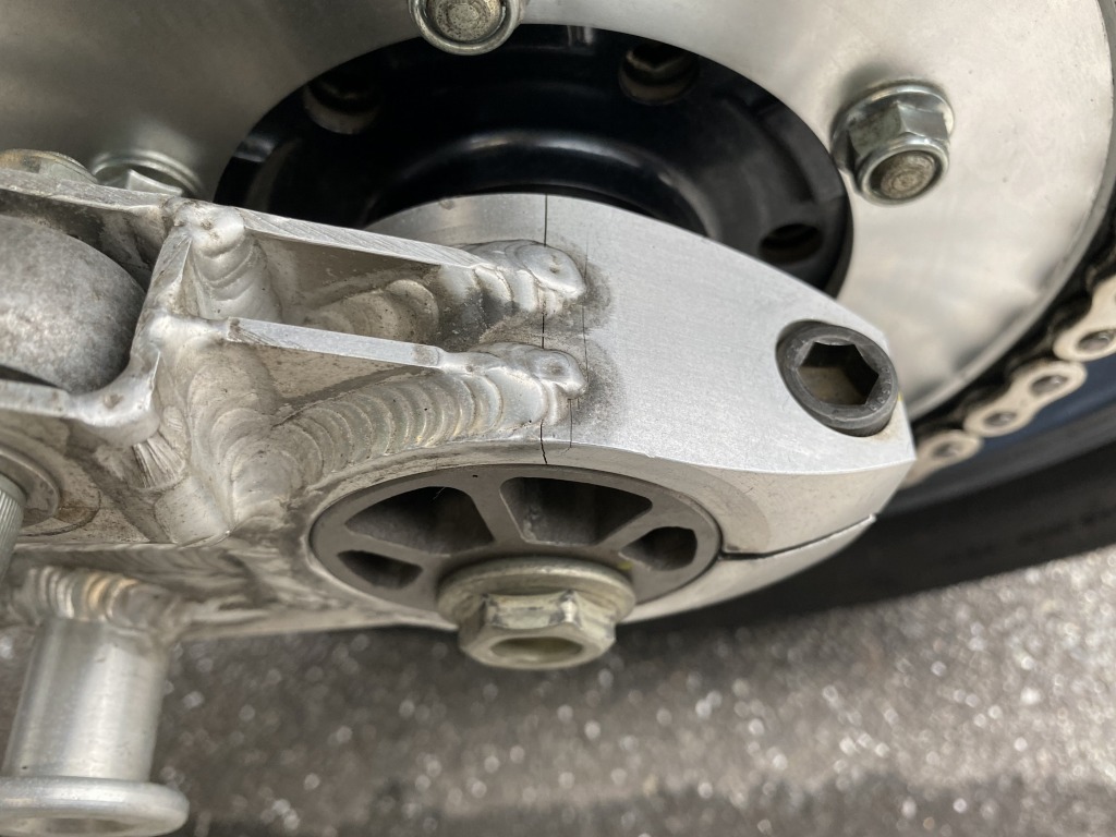 この事例は度々目にするので、S1スイングアームの弱点と言えるでしょう。下側にクラックが入る事例もあります。