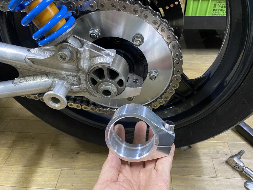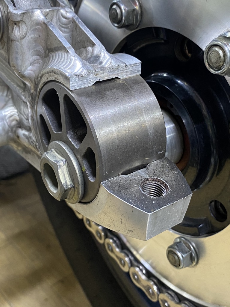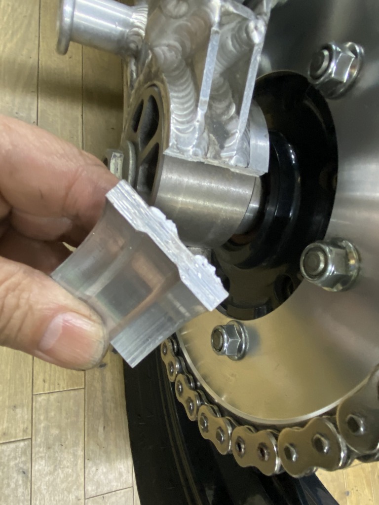 過去に作業したところを全体的に眺めていたところ、スイングアームに重大なトラブルを発見しました。