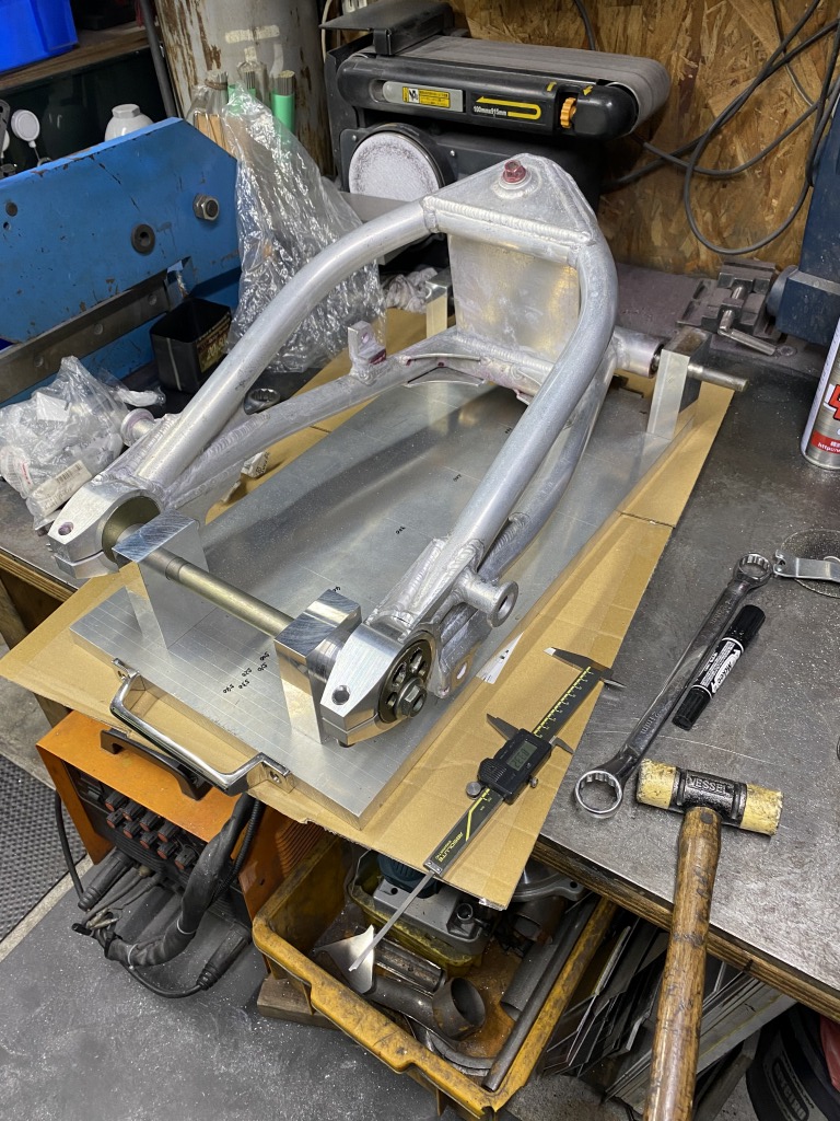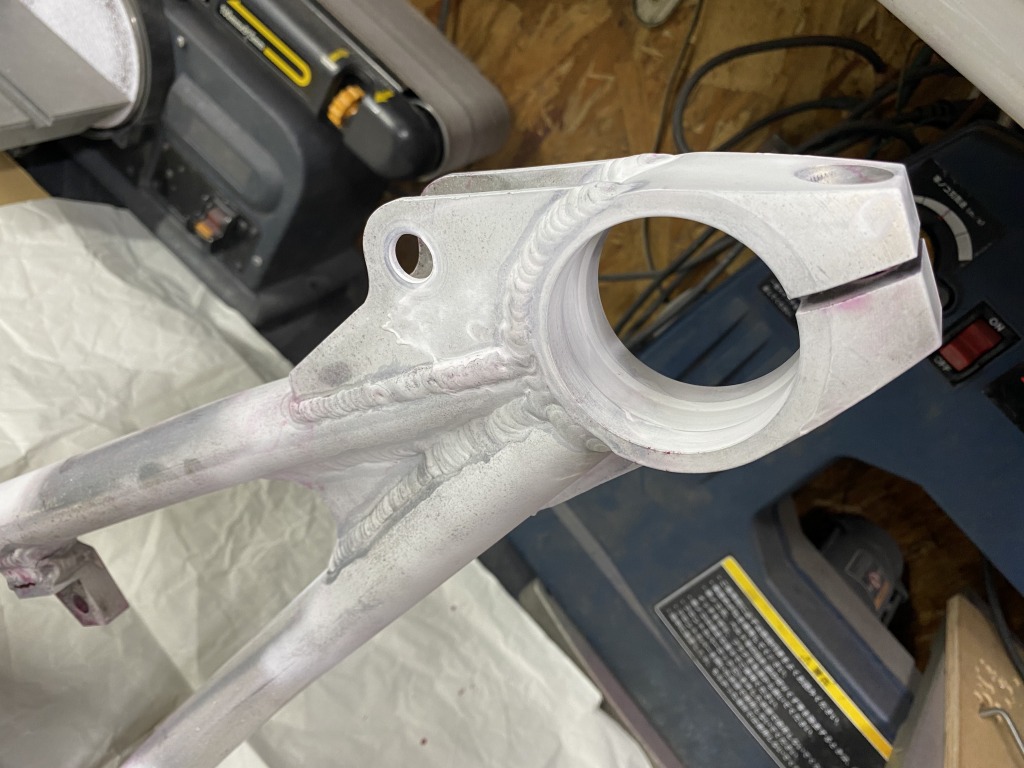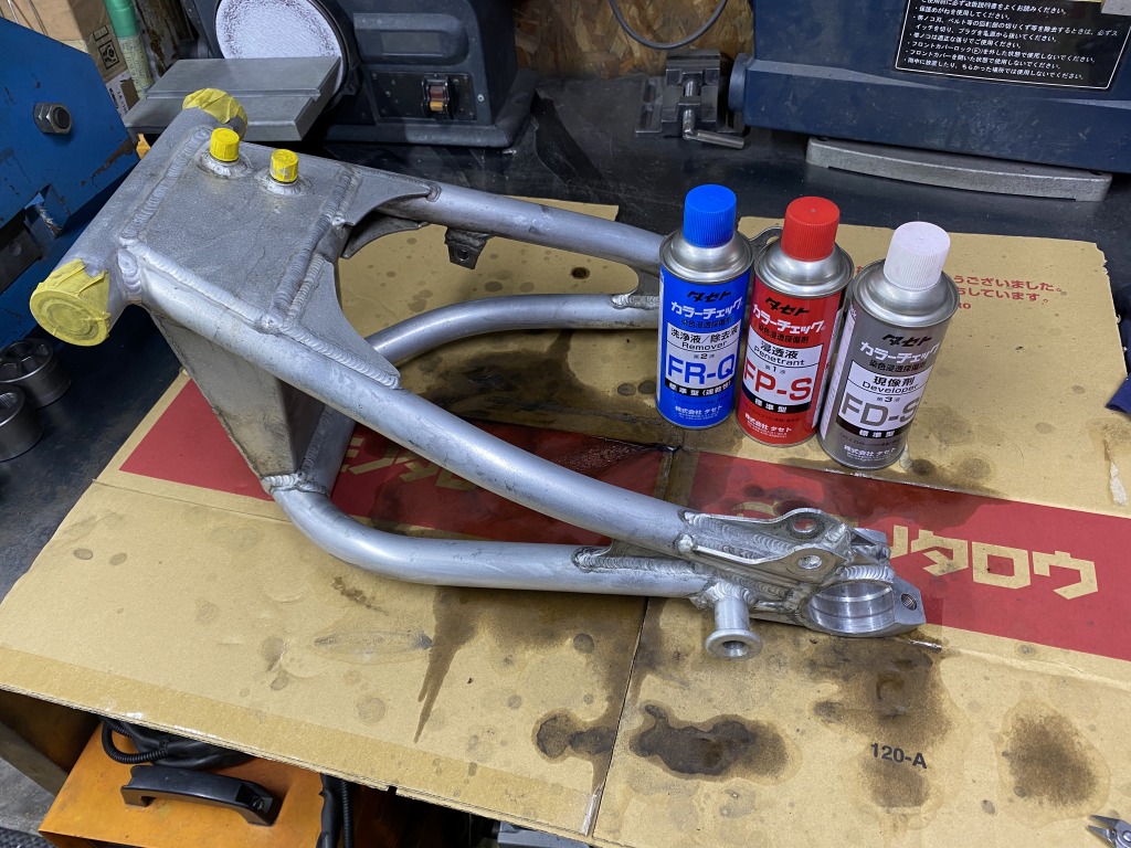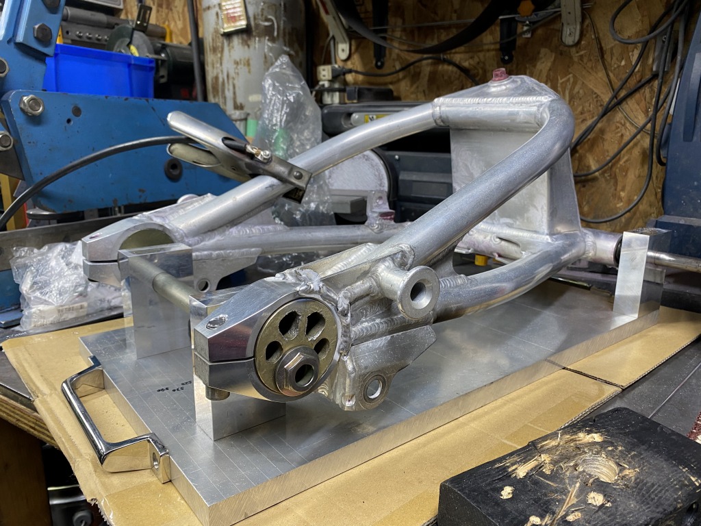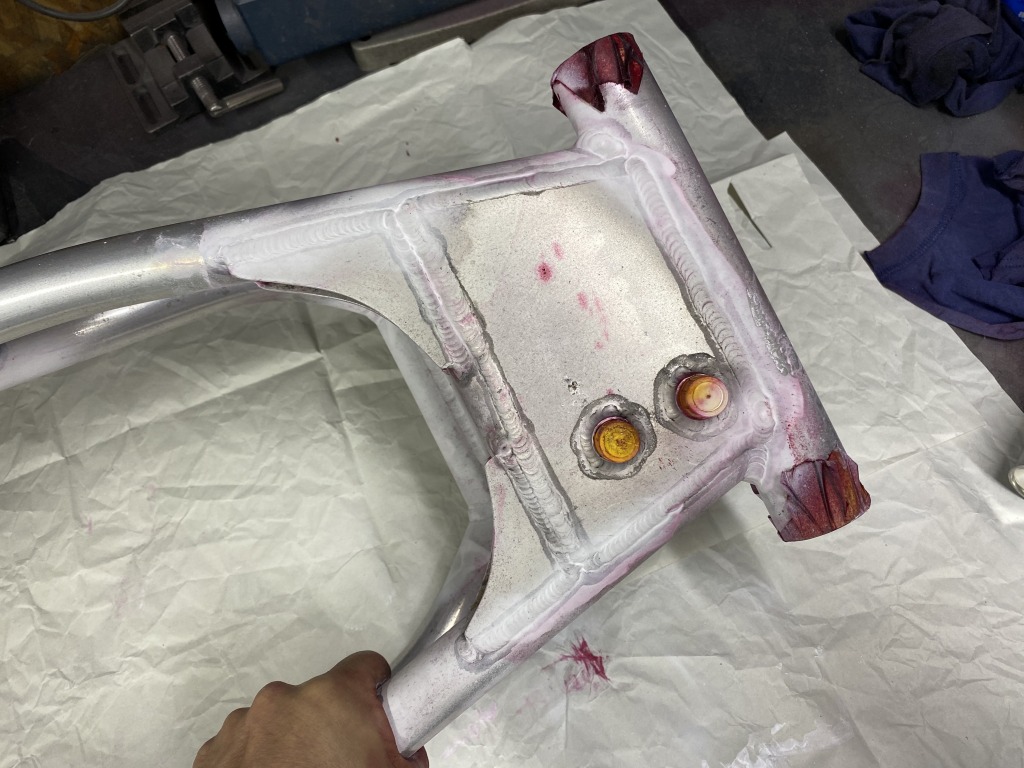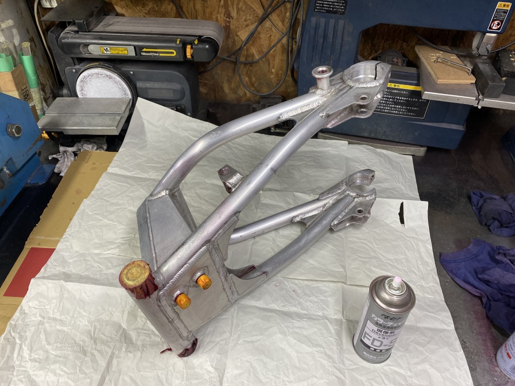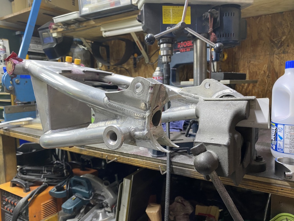 一通り溶接が終わりました。このあと小さい三角補強板を作ってサス受けの後ろ側に追加すれば完成です。