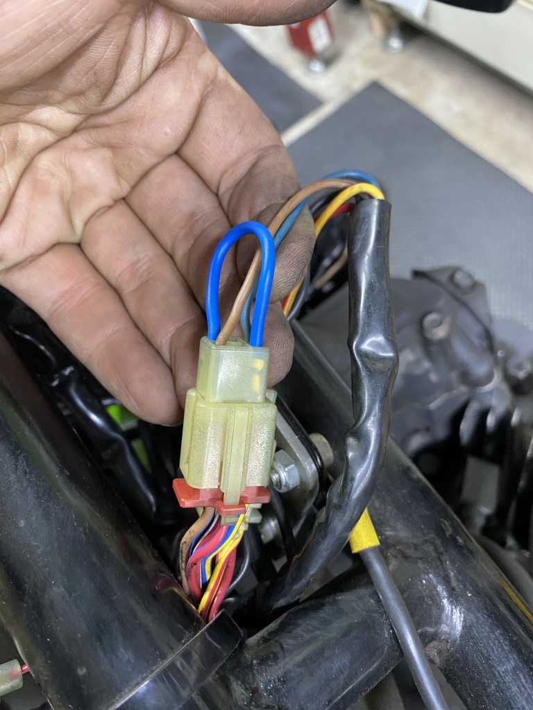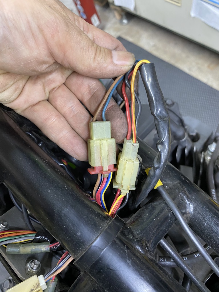 右のハンドルスイッチのカプラーです。ここもブレーキスイッチの配線が間違っていました。