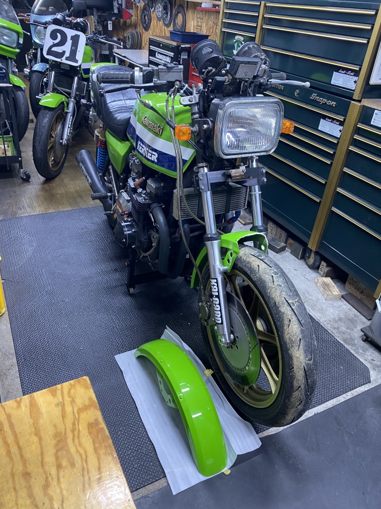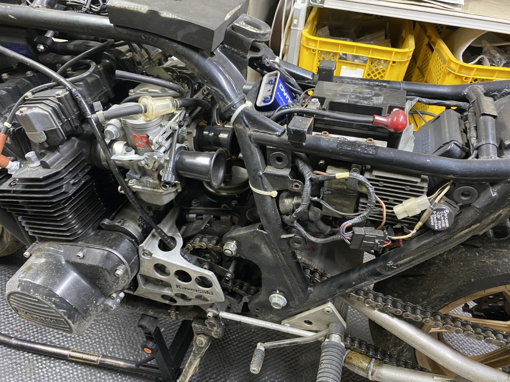 先日、筑波サーキットの最終コーナー中ほどでコースアウト、グラベルで転倒した時のダメージを修復します。
