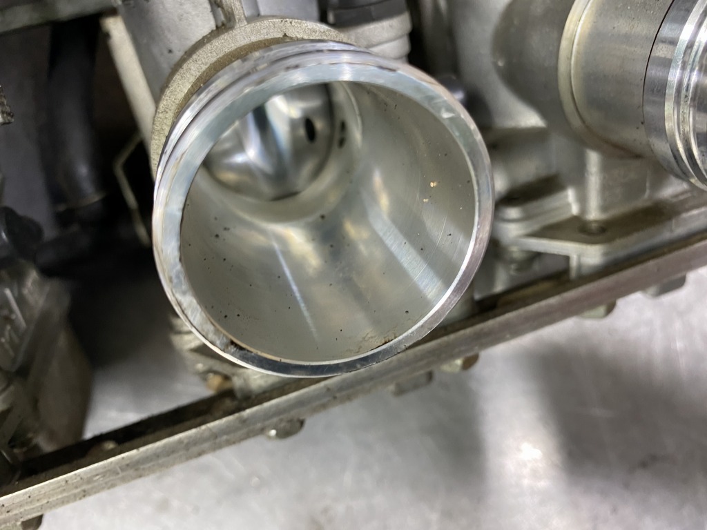 スロットルバルブを開けて覗くと、極わずかな土の粒のような粒子がいくつか見られます。