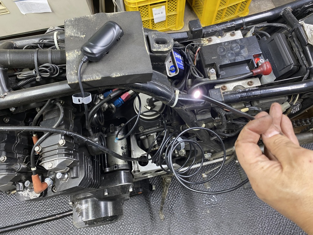 プラグホールから内視鏡を入れてシリンダー内を見てみます。
