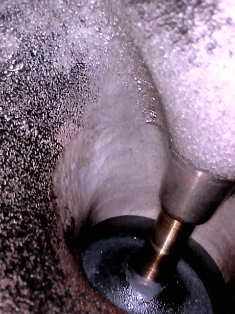 ピストンの外周に数粒の粒子が見えます。シリンダー壁には特にダメージはありません。ピストンのリセスにはバルブのスタンプが付いていますね。