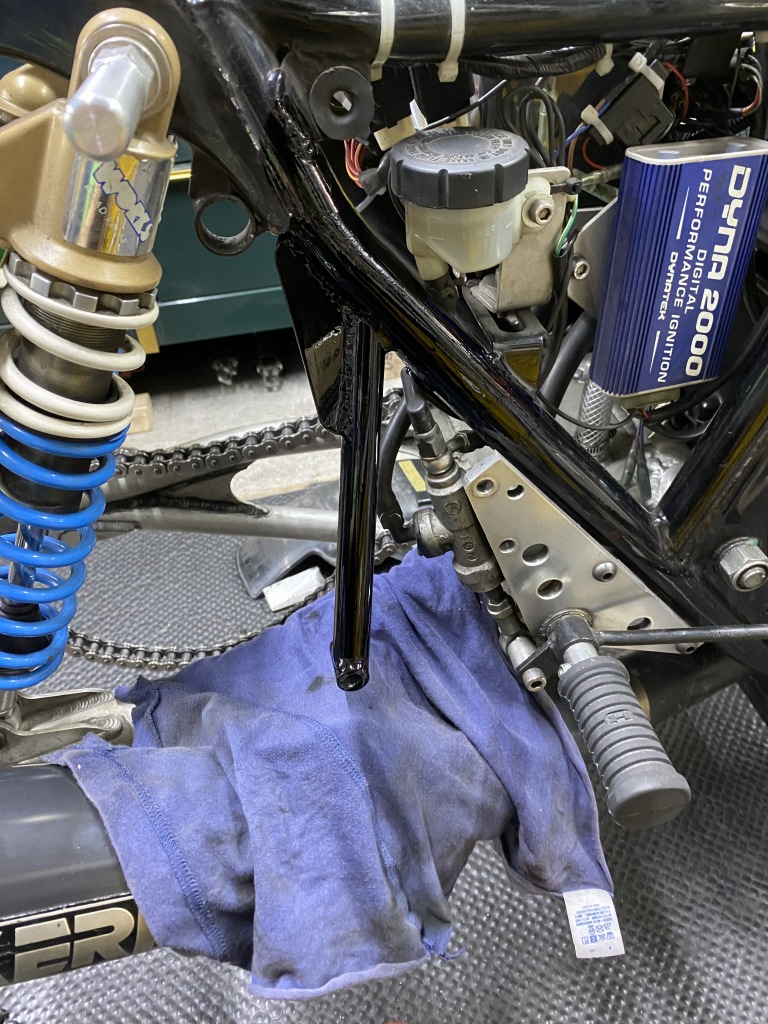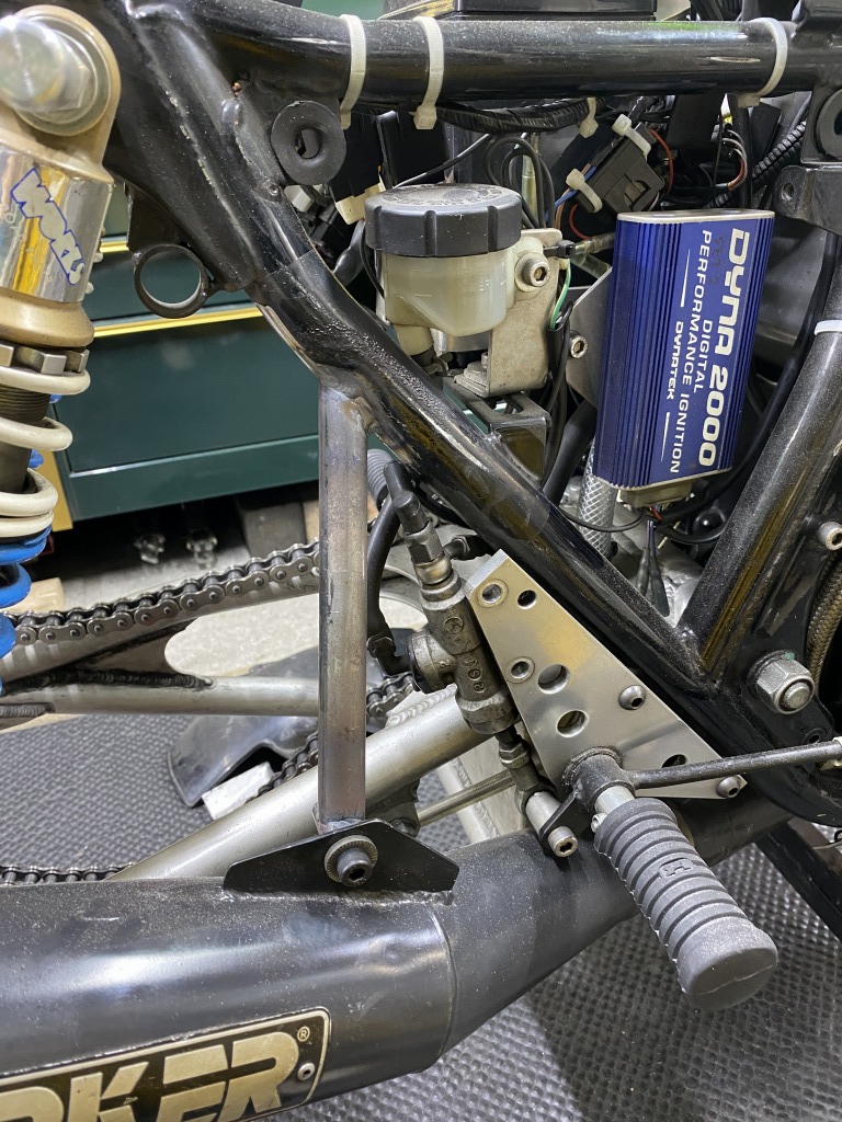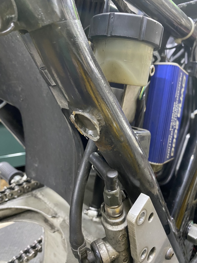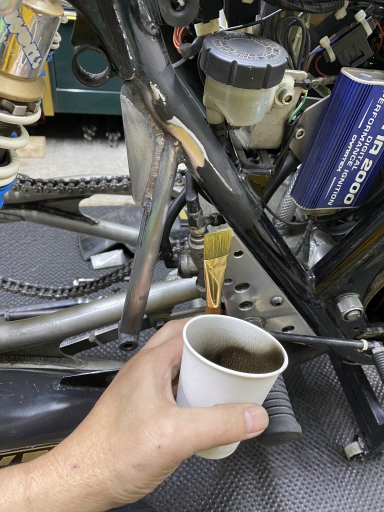 サイレンサーステーにクラックがあるので、このタイミングで修理します。
