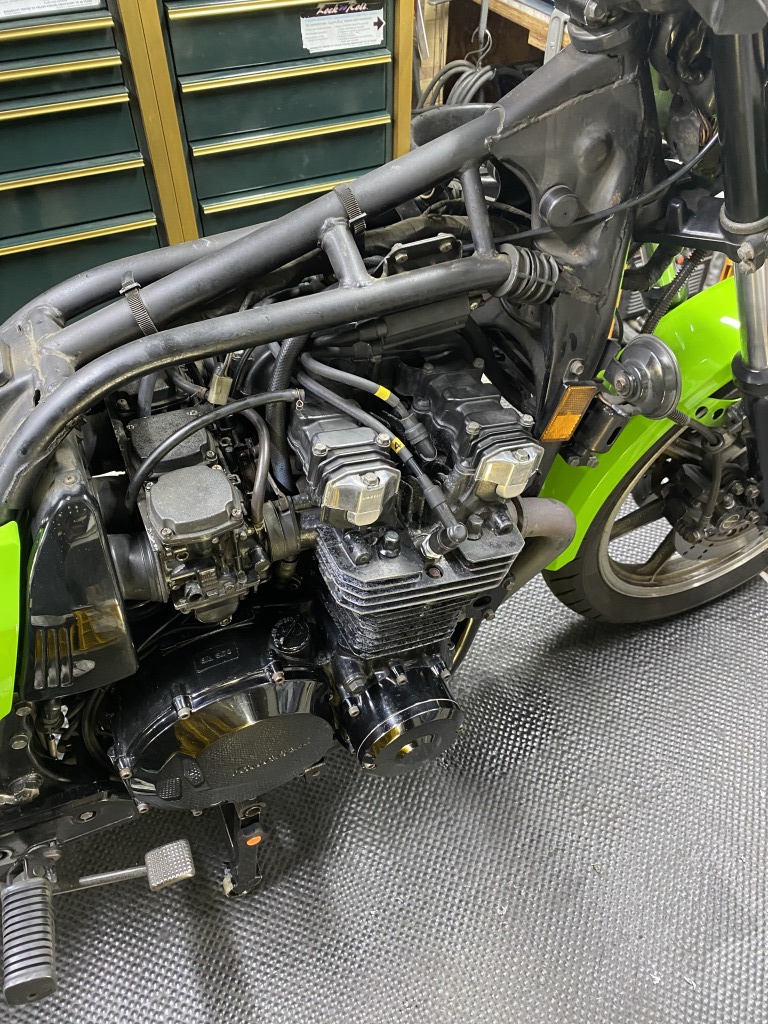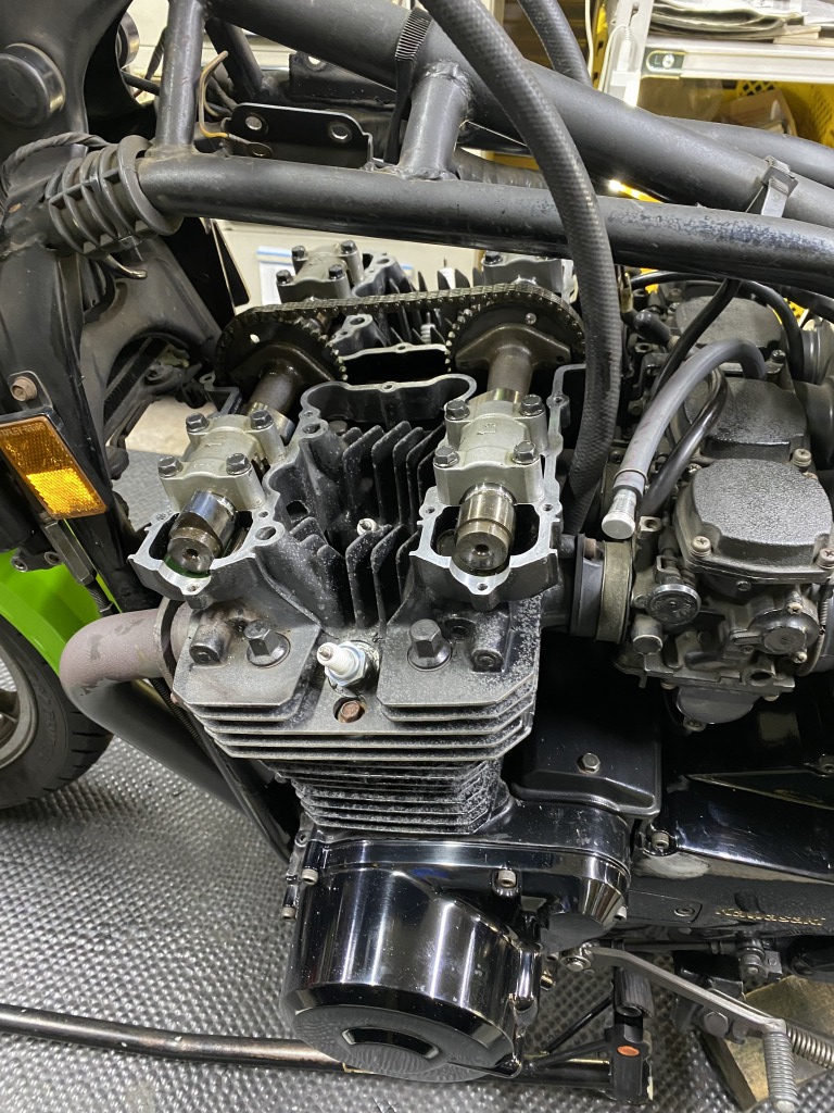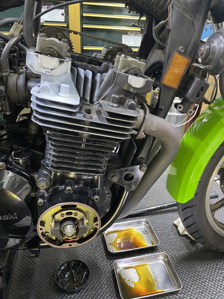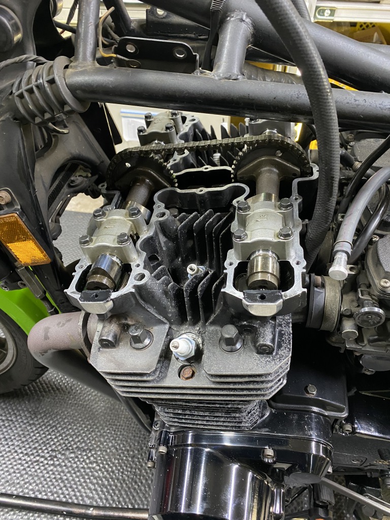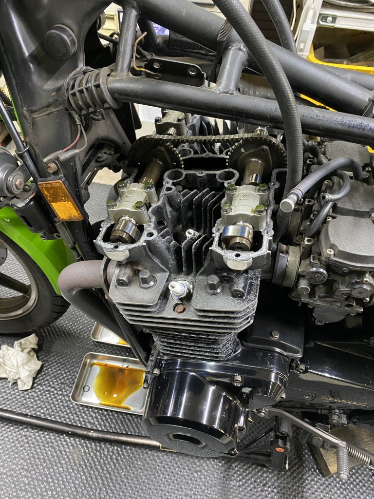ガバナーの動きもスムーズになりました。エンジン始動チェックすると、カムチェーン周りの異音も消えました。