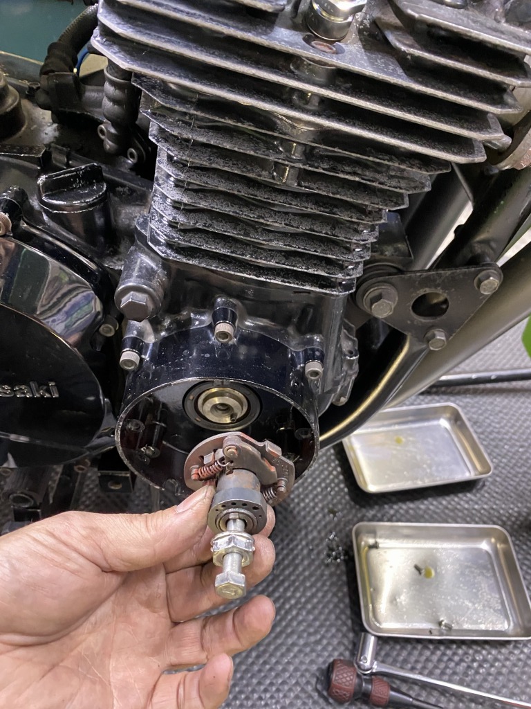 進角装置のガバナーの動きが渋いので分解点検します。