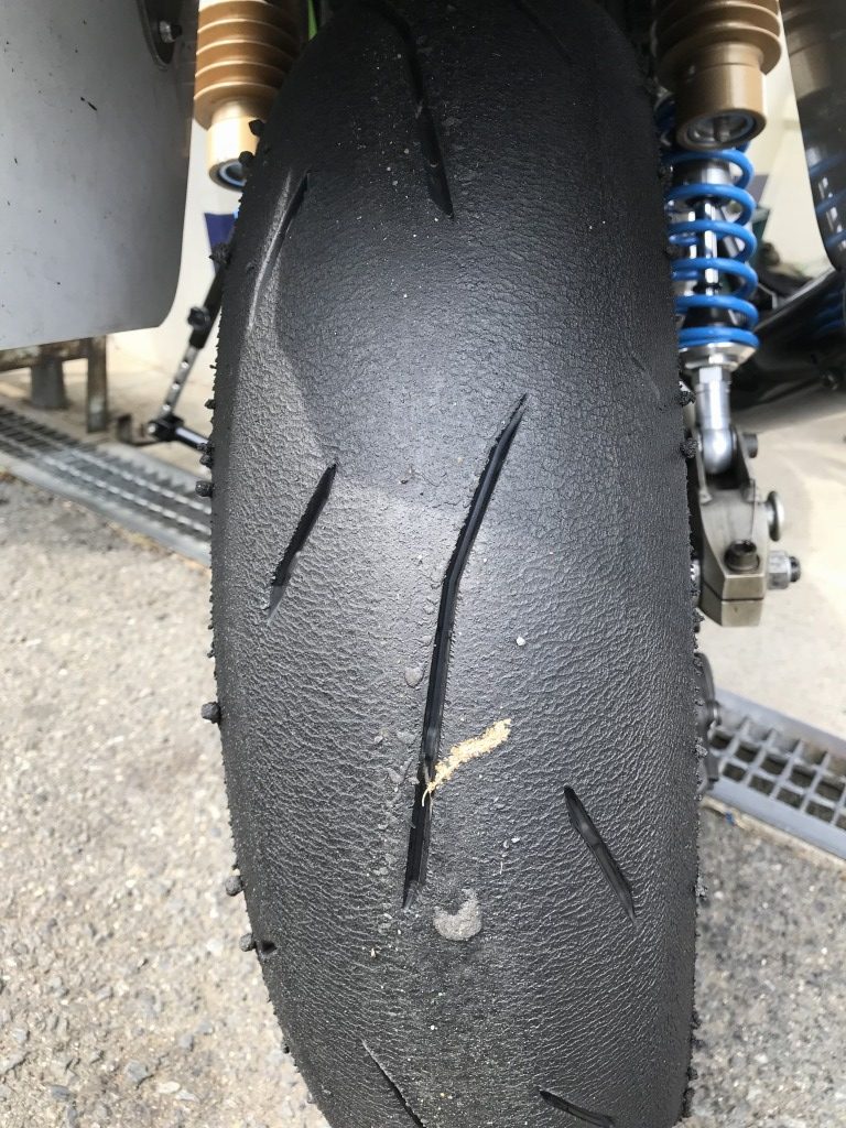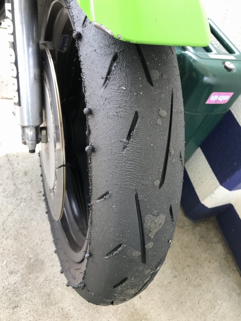 タイヤの溶け具合はこんな感じ。フロントはα13SPです。