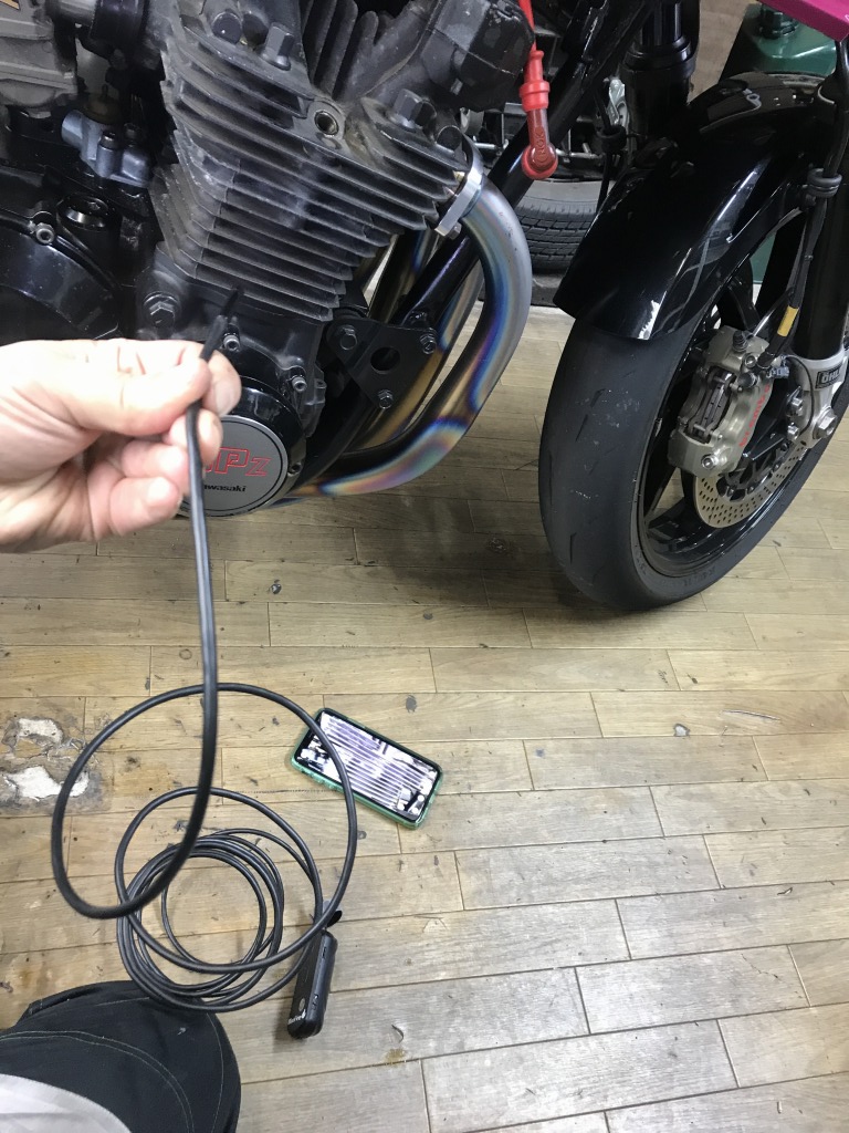 エンジンパワーがあってもクラッチが滑るので、内視鏡でエンジン内を点検します。