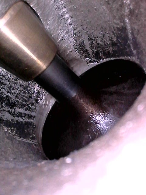 内視鏡でシリンダー内も点検します。ピストンはノーマルのようで、スカッフも少なく、カーボン堆積も少なくいい状態です。