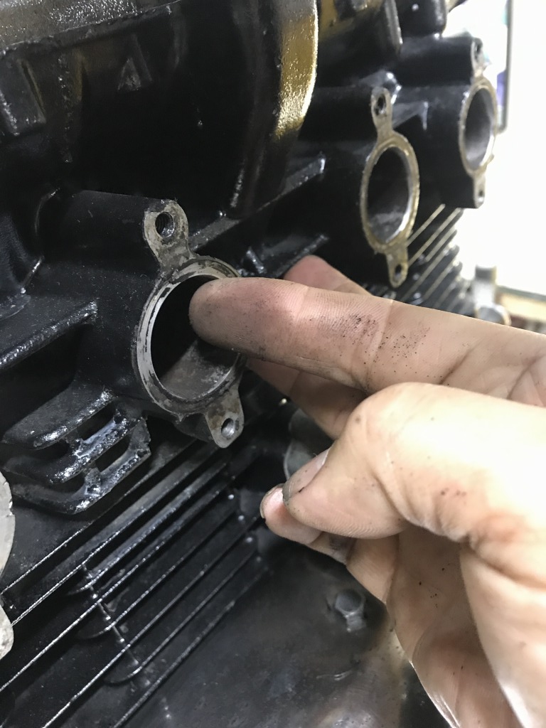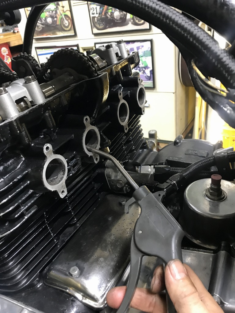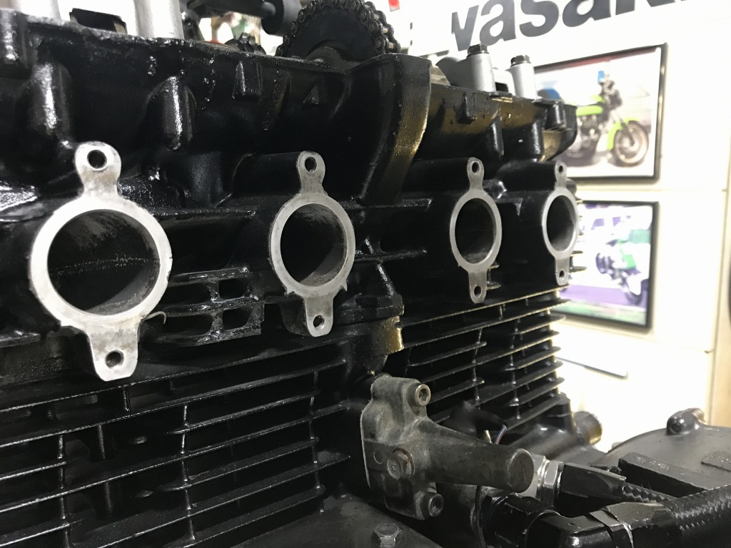 インテークポートです。ポート内は少し研磨してあり、バルブガイドが新しいので、腰上はオーバーホールされているもよう。