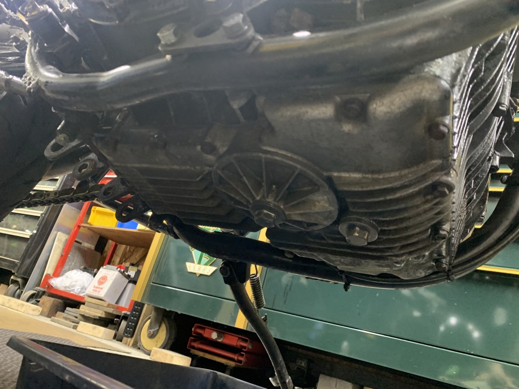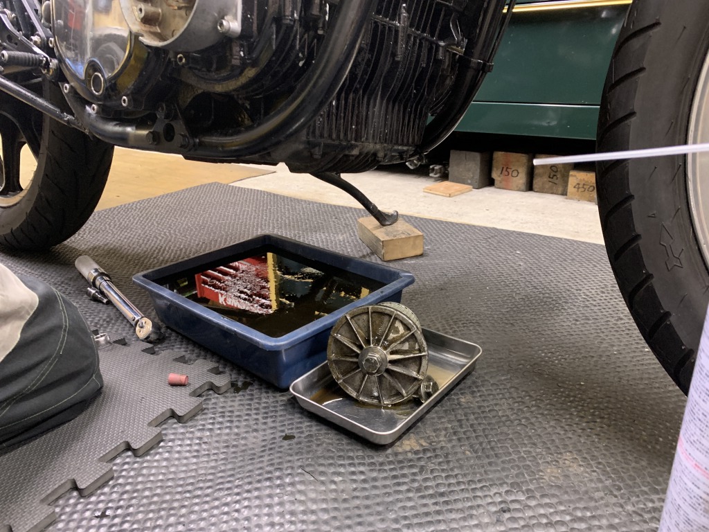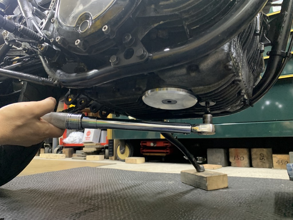 エンジンオイルを抜いてカバーを外します。