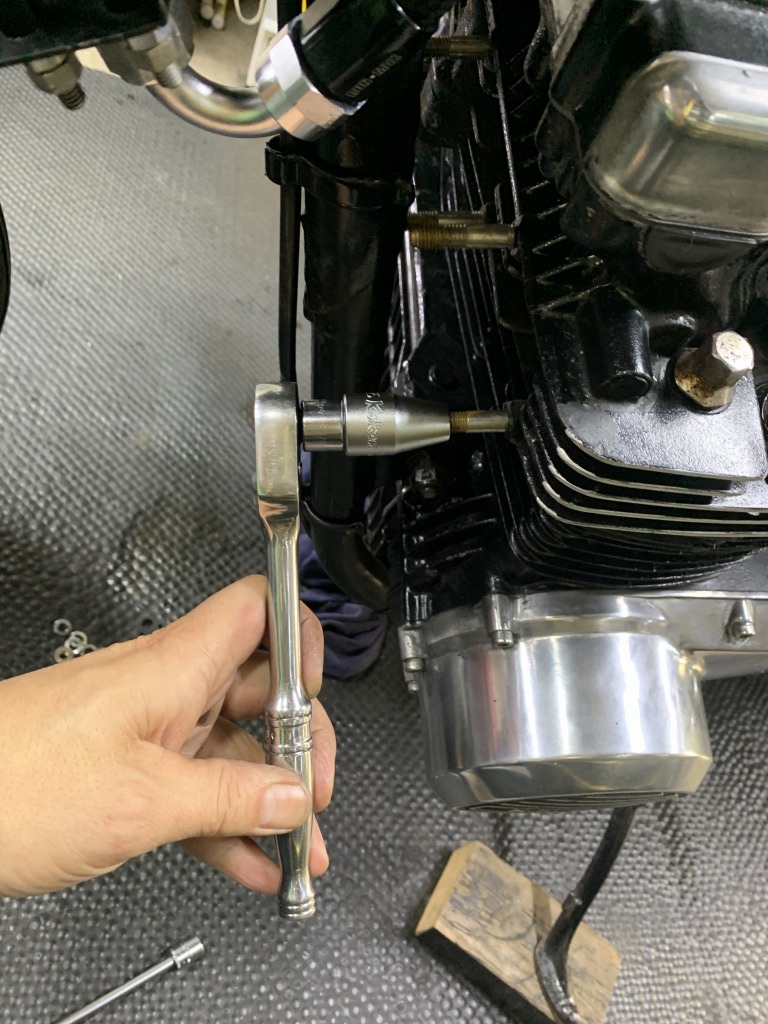 スタッドボルトはステンレスに交換されていますが、数本緩んでいるので修正します。