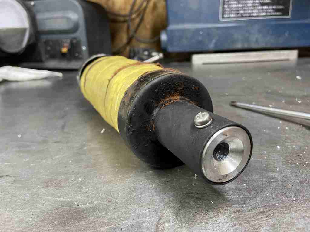 同時に継続車検も受けるのですが、この車両は登録の際に保安基準適用年が平成11年になっているので、音量規制を受けることになります。現在のラージバッフルでは通らないので、お持ち込みのスモールバッフルにオリフィスを追加して対策します。