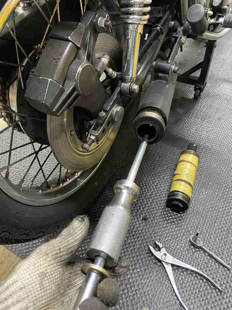既存のラージバッフルをスライディングハンマーで引き抜きます。