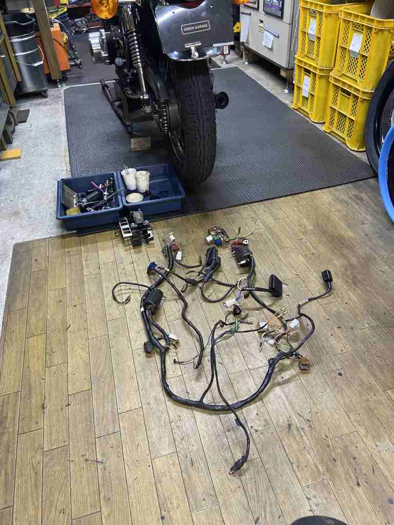 今回交換する主な電装品はこちら。メインハーネスはZ750FX1用を使います。
