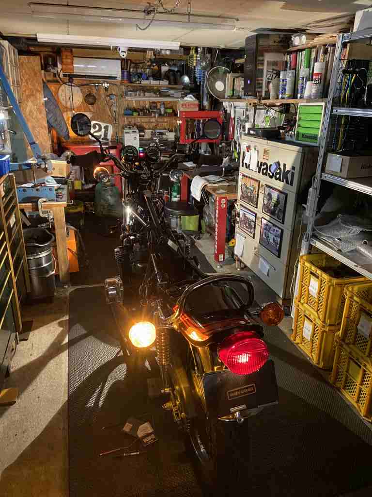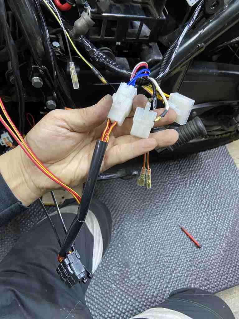 配線加工が全部済んだら動作確認します。ヘッドライトはリレーが入ったのでかなり明るくなりますよ。