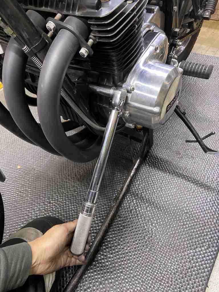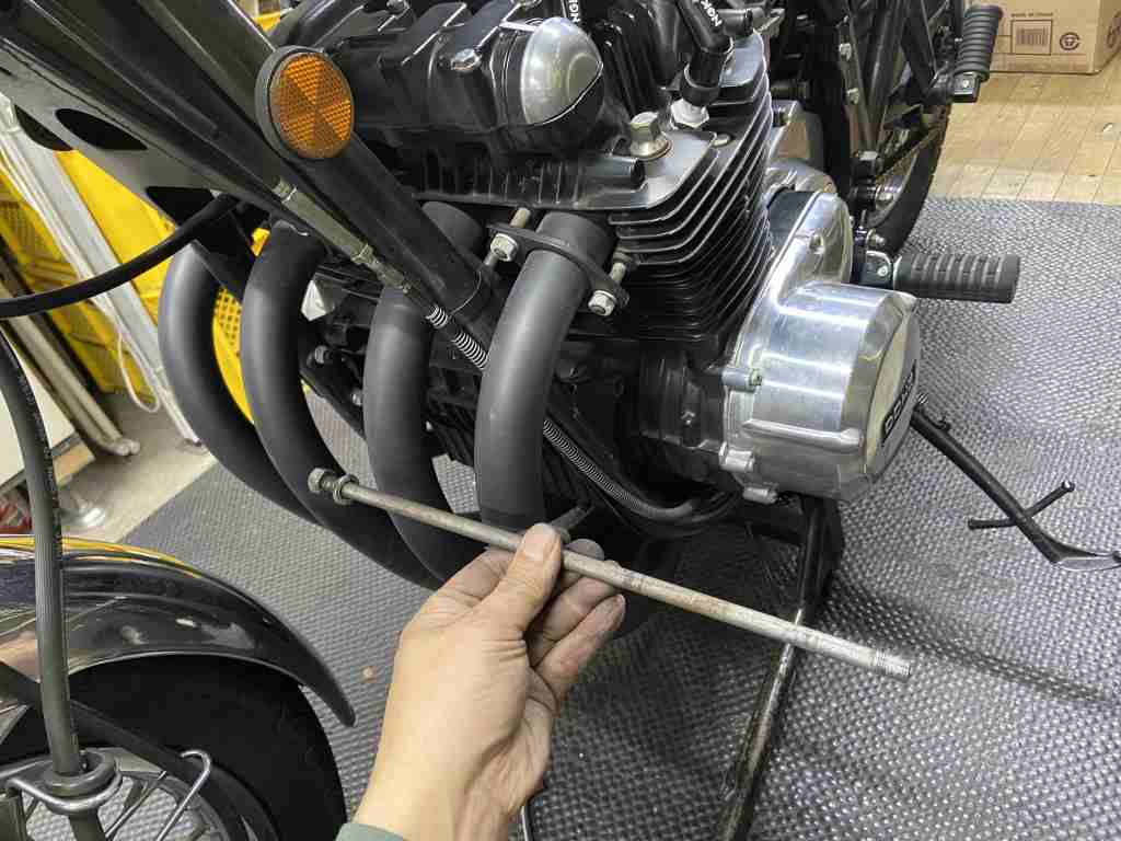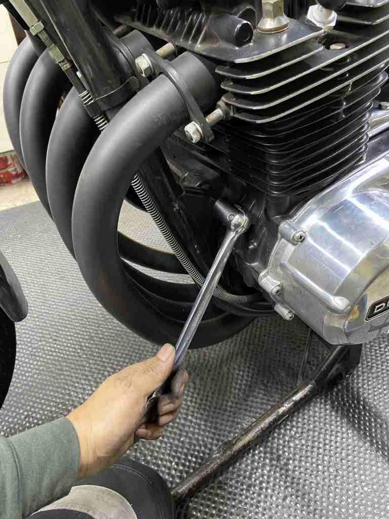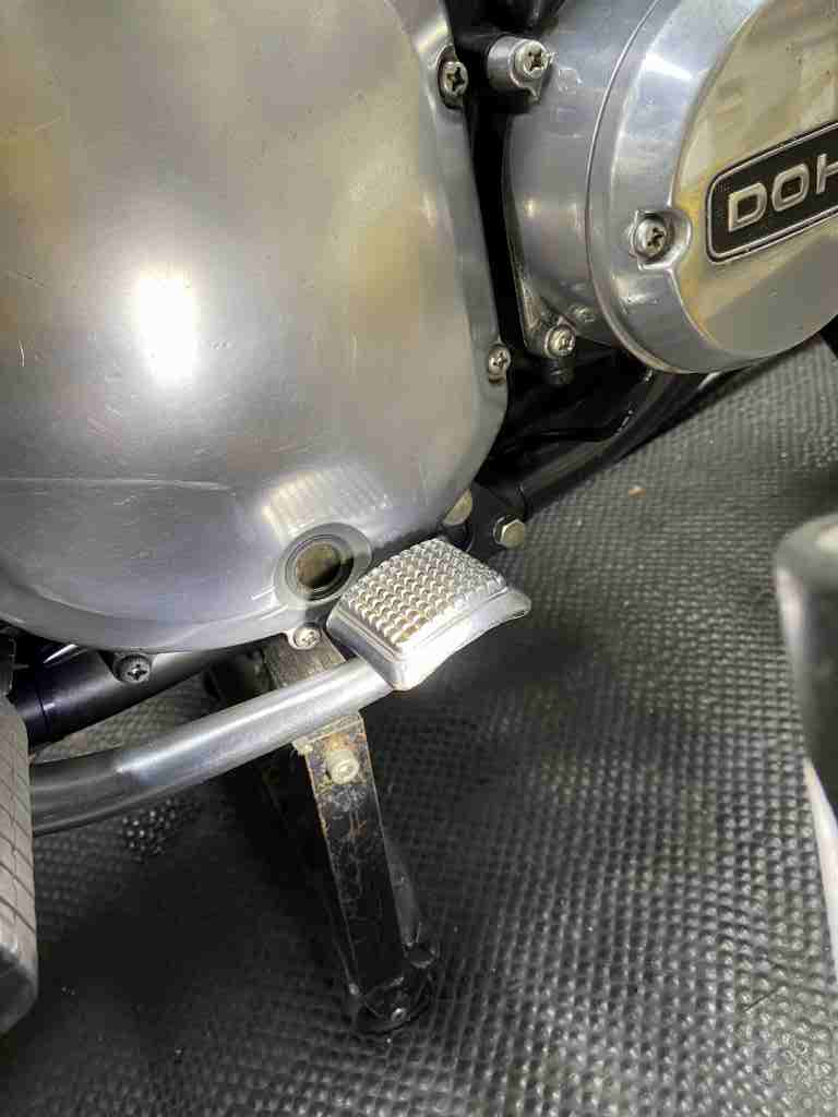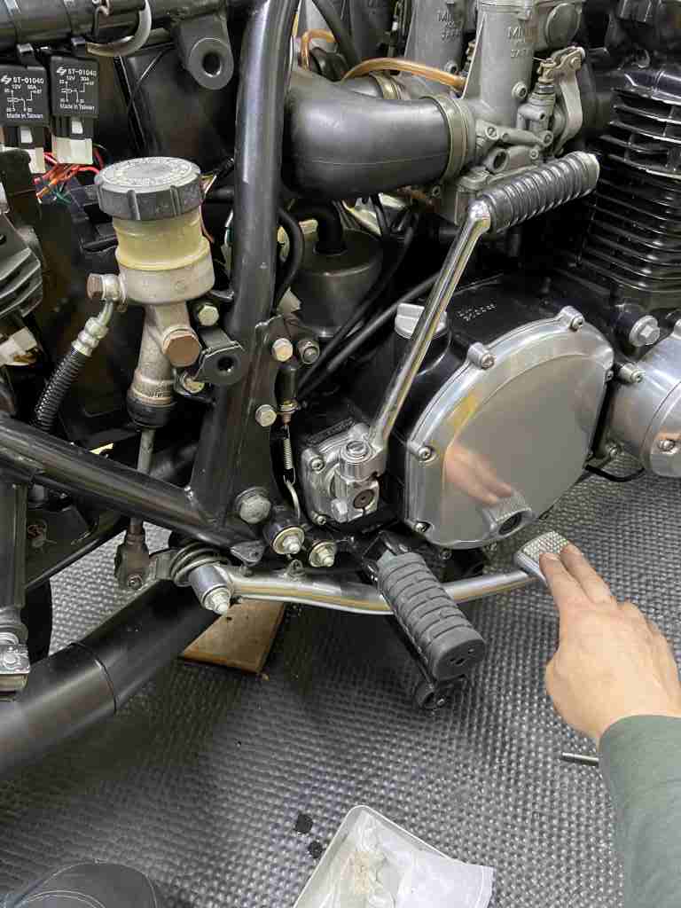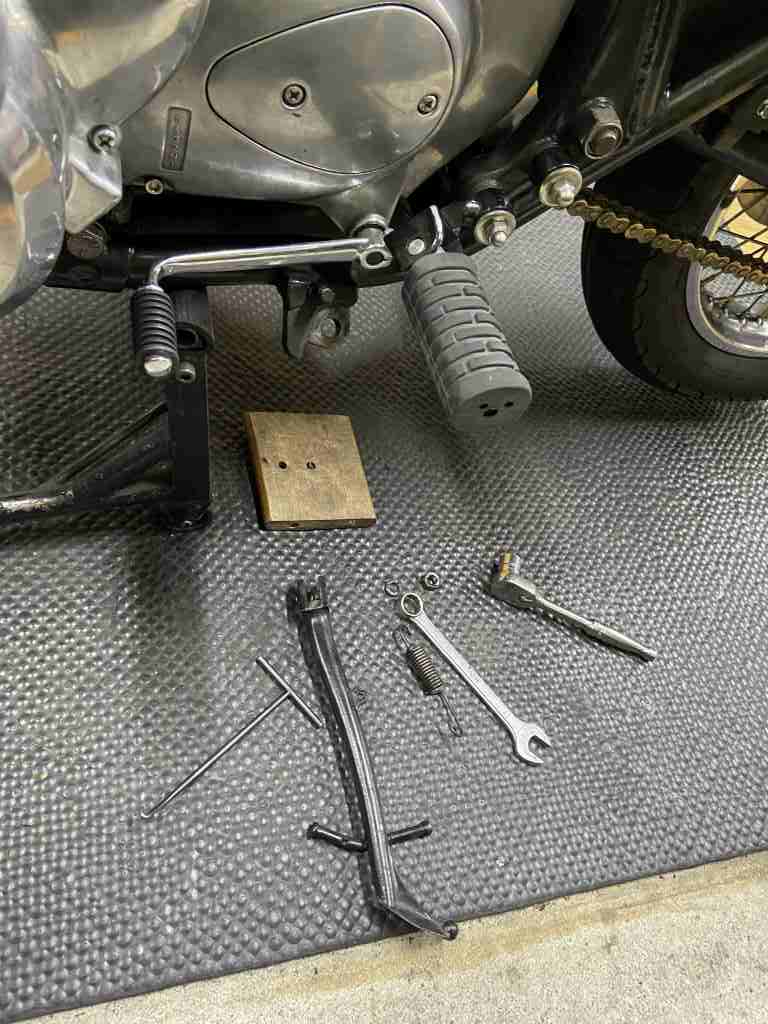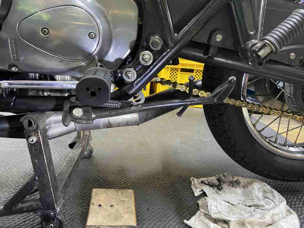 最後に気になる点が。サイドスタンドの付け根が異常にグラグラするので点検します。