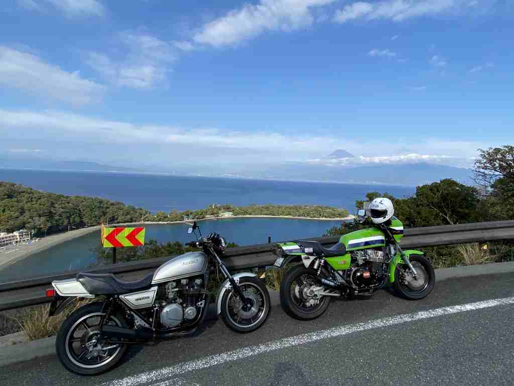 熱海から伊豆半島を横断し西伊豆へ。相模湾を挟んだ対岸には富士山が見えます。