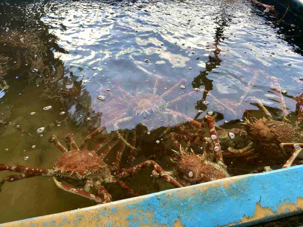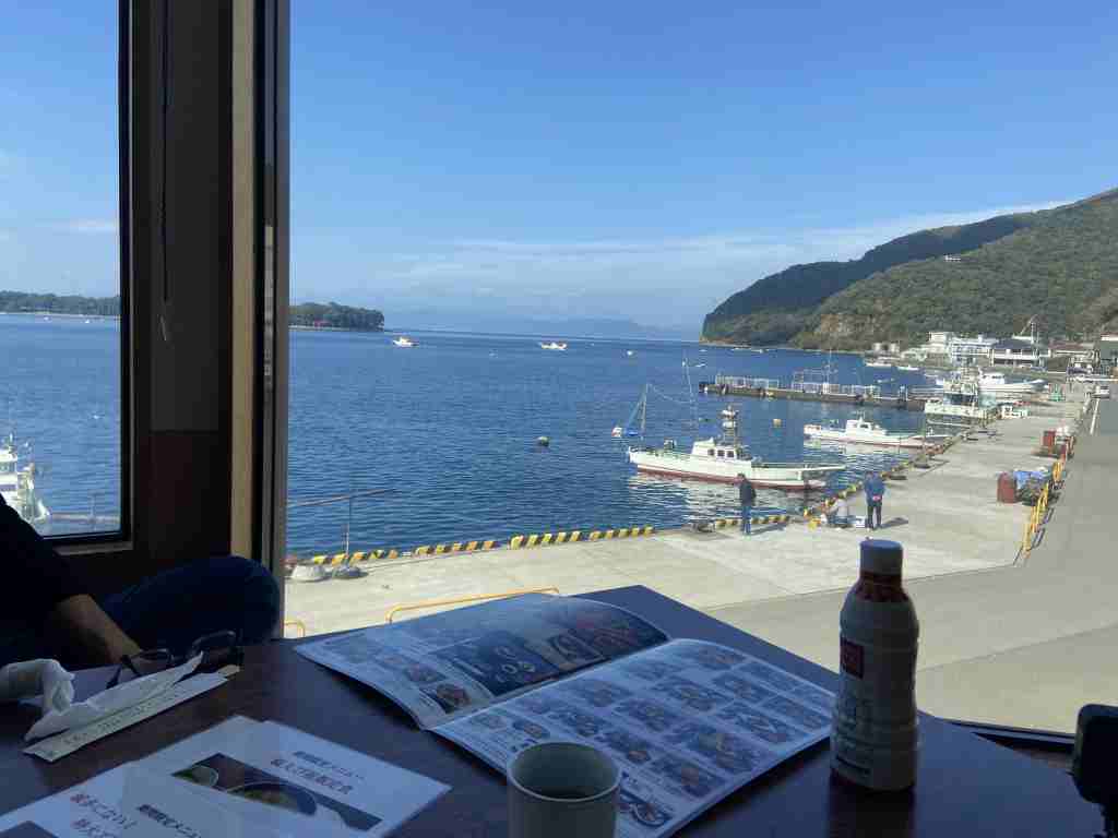 そのまま西伊豆の海岸線を南下し、戸田(へだ)港に到着。高足がにで有名なかにやさんで昼食です。