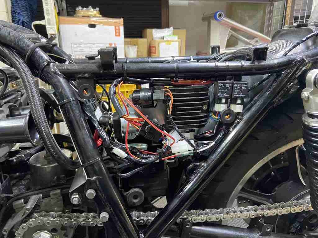 灯火類の動作確認が終わったら、ハーネスをきれいにフレームに艤装します。