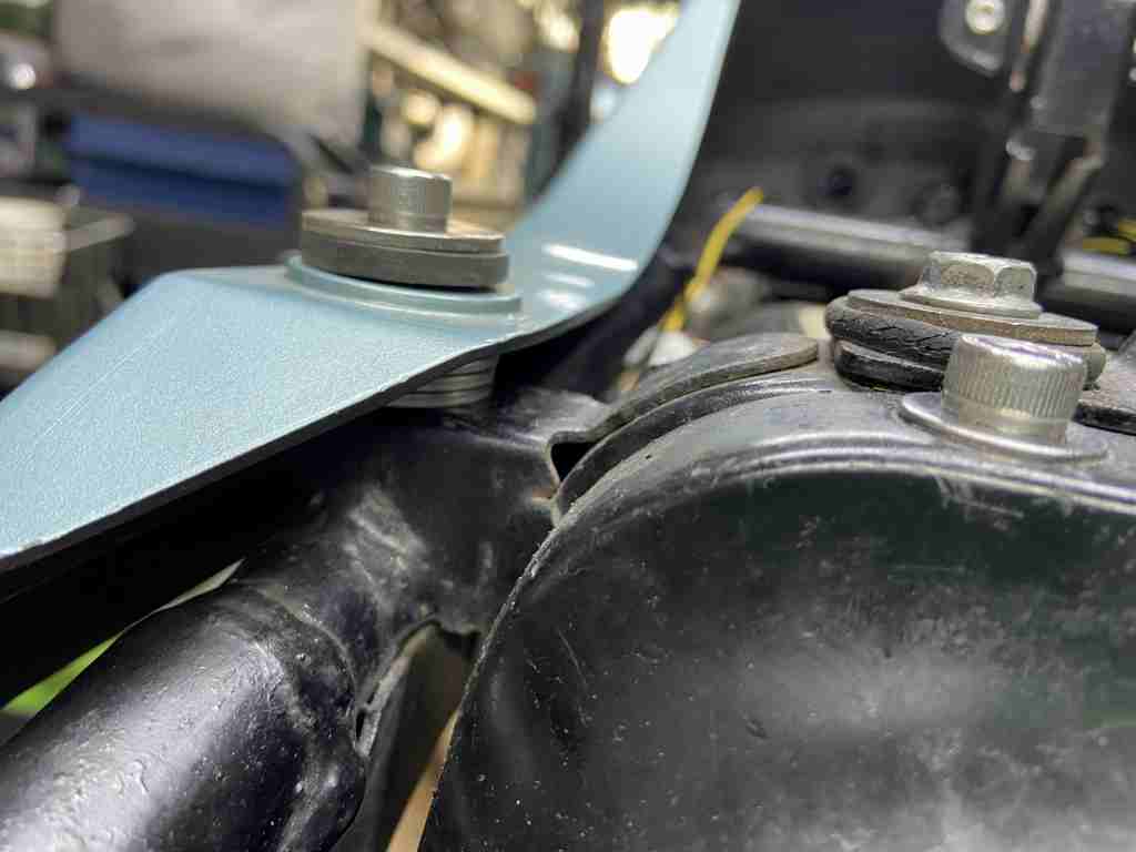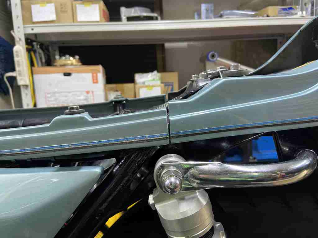 テールカウルとシートサイドのモールは高さが合わないので、テールカウル側にスペーサーを入れて合わせます。