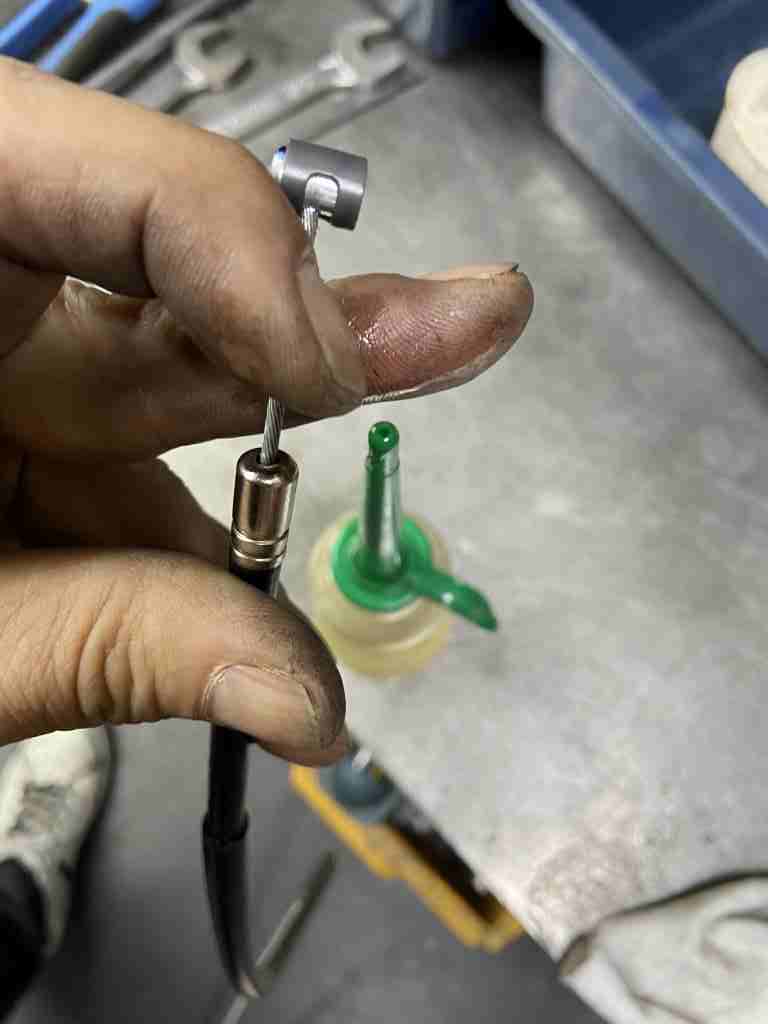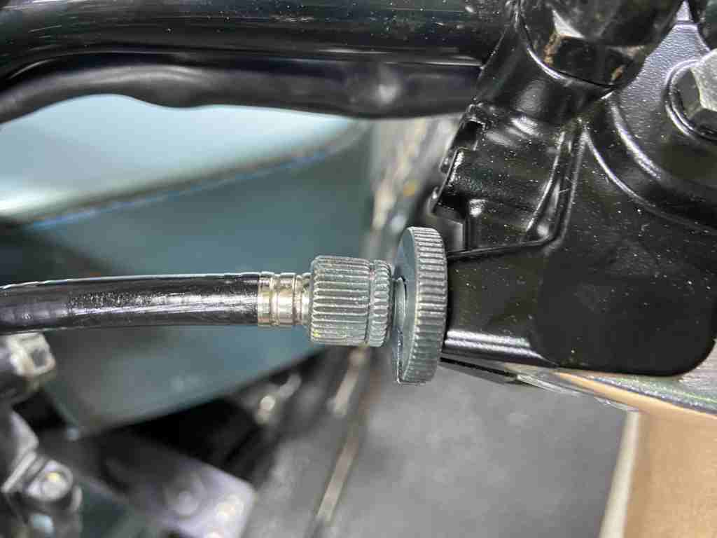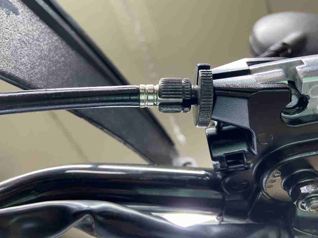 最後にケーブル中間のアジャスターで、レバーの遊びを調整します。