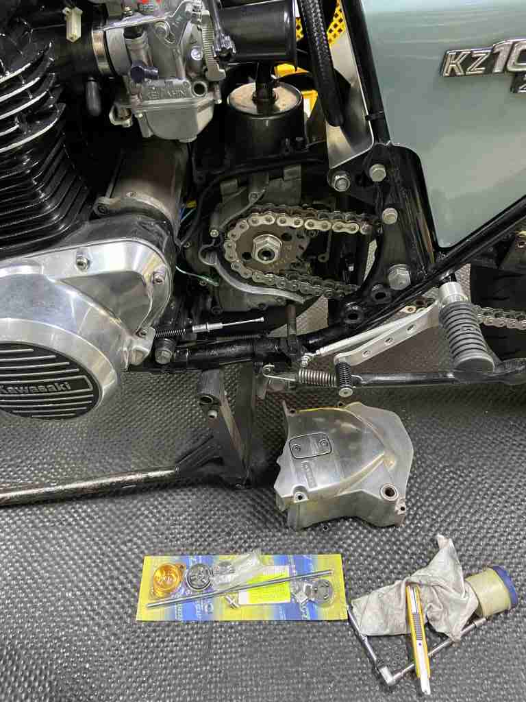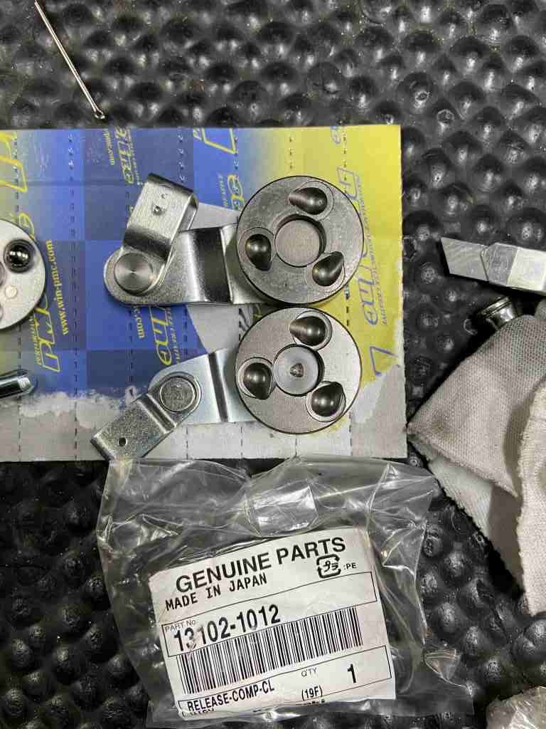 「イージー」たるゆえんはこのレリーズレバーの腕が長いことでそうさせますが、プッシュロッドを押すストロークが短くなり、クラッチの切れ不良から来るトラブルを誘発しやすくなります。そこでレリーズレバーは下のZ1000R純正のアームが短い物に交換します。レバーの軽さよりストロークを優先します。
