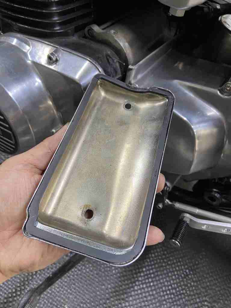 スターターモーターカバーのパッキンは、新品時にボンドで貼り付けておくと長持ちします。