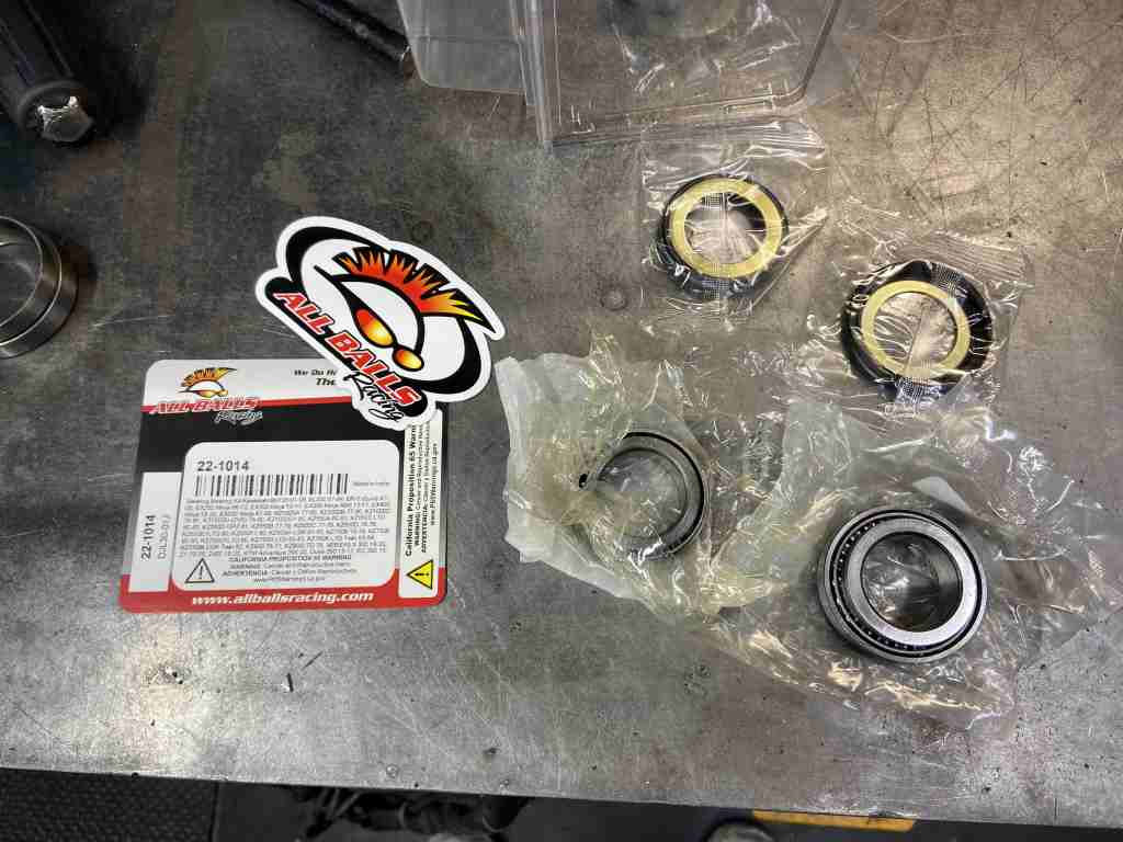 ステムベアリングは納期の関係から、今回はこちらを使用します。上下のダストシール付きです。