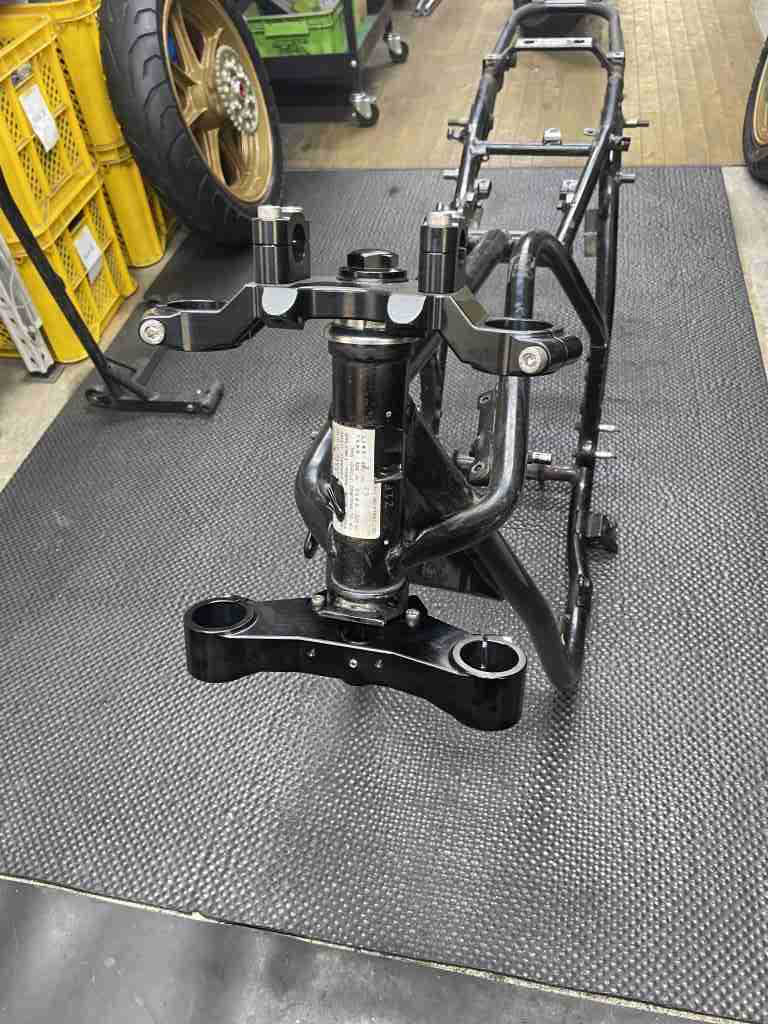 リヤのオーリンズは、アッパーマウントの幅が狭いので、5ミリのスペーサーを併用します。