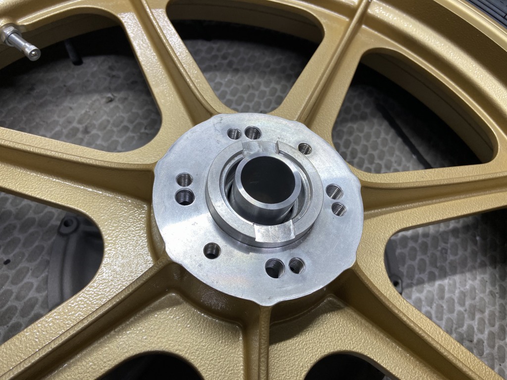 ローターの取り付けは、元のM10×4穴から、M8×6穴に変更しています。S1仕様はフロント6穴というイメージなので。