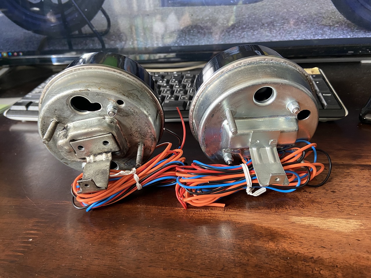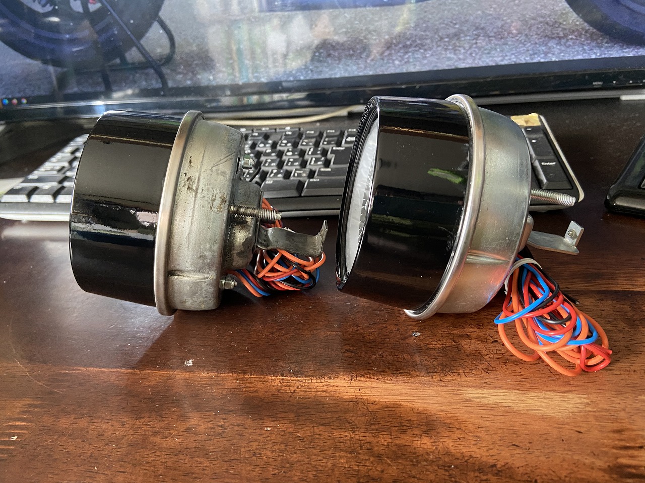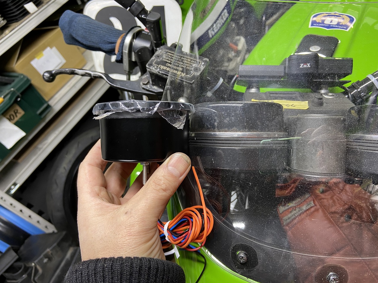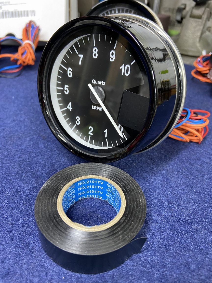 こちらは初めからZ1メータにビルトインしたもの。ケースを送って新品のスタックメーターを入れてもらいます。表のガラスはスタックメーターのもの。Z1メーターのガラスは外してあります。アッパーケースも新規塗装済み。