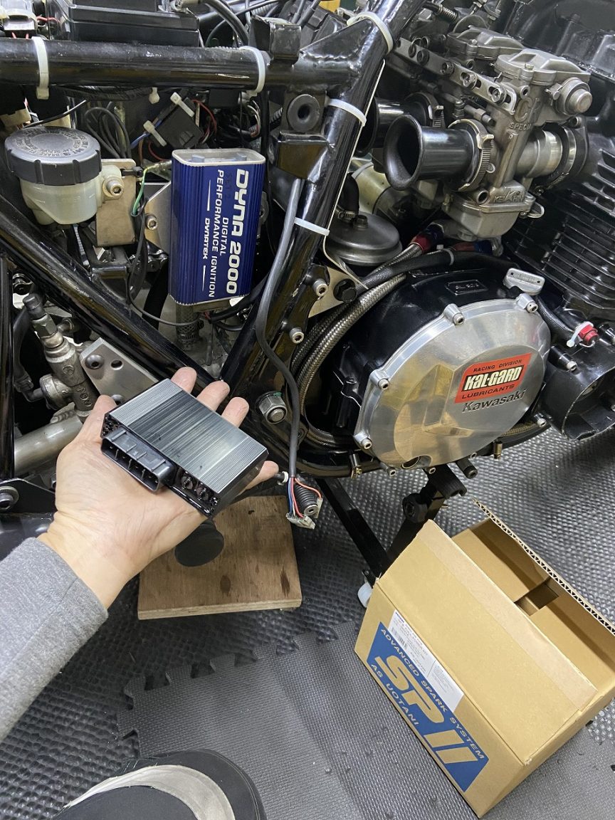 前回のレースでも予選中にエンジンが失火するトラブルがありました。この2年間で2回目なので、原因は特定できていませんが念のため点火系を更新します。今回からはウオタニSP2を使用します。