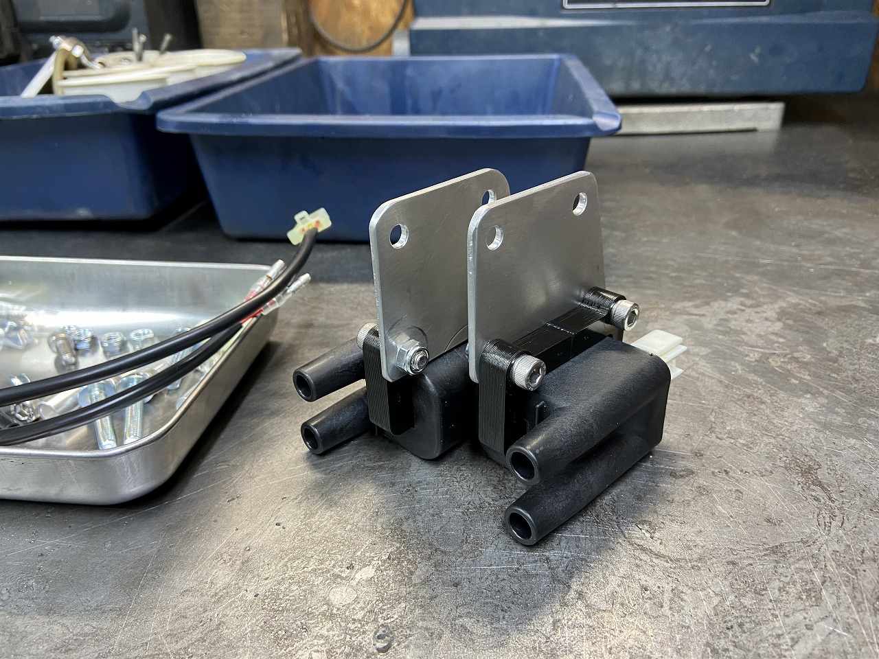 コイルブラケットはアルミの厚板でコンパクトに製作したものを使用します。