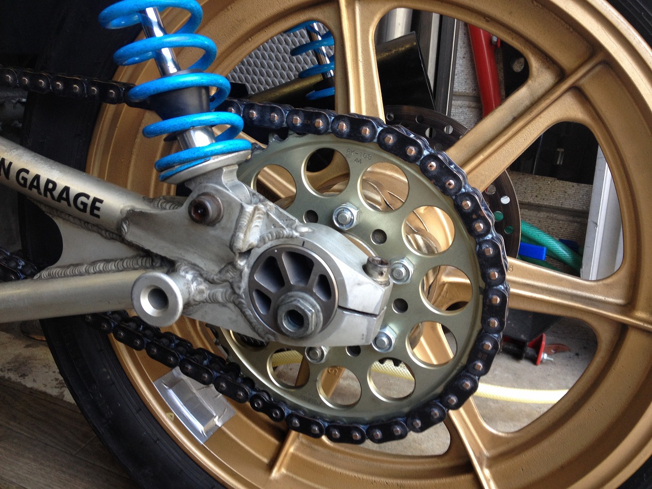 これを注文に応じてお持ちのS1スイングアームの寸法に合わせ機械加工し、最後にアルマイトして完成品となります。ZRXスイングアーム用もこの同じ素材で作れます。