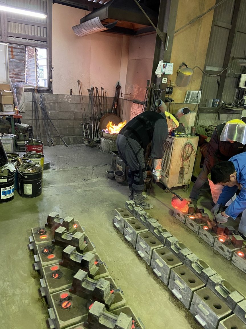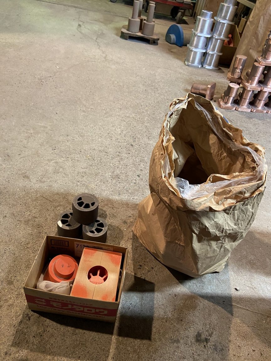 いい機会なので工場内を見学させていただきます。現在の作業は銅を使った鋳造の工程でした。S1エキセントリックも型はひとつなので、同様な作業となるそうです。